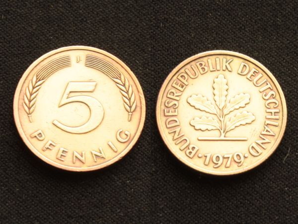 【ドイツ】 5ペニッヒ 1979年 J 5pf オークの葉 麦 ブロンズ・プレーテッド・スチール 西ドイツ時代