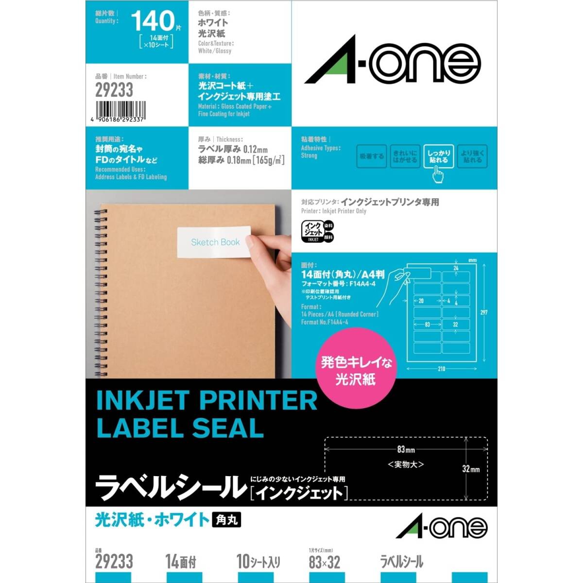 エーワン ラベルシール インクジェット 光沢紙 A4 14面 10シート 29233