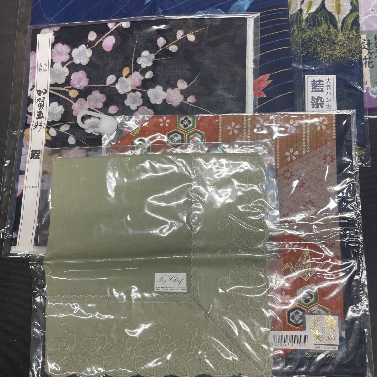 G3391 【未使用品 ハンカチ まとめて】 友禅 わさび染め 藍染 あぶら取りはんかち 森英恵 コムサイズム 他 保管品