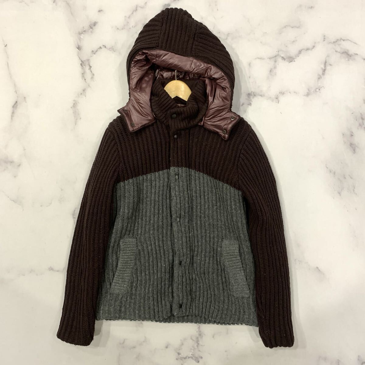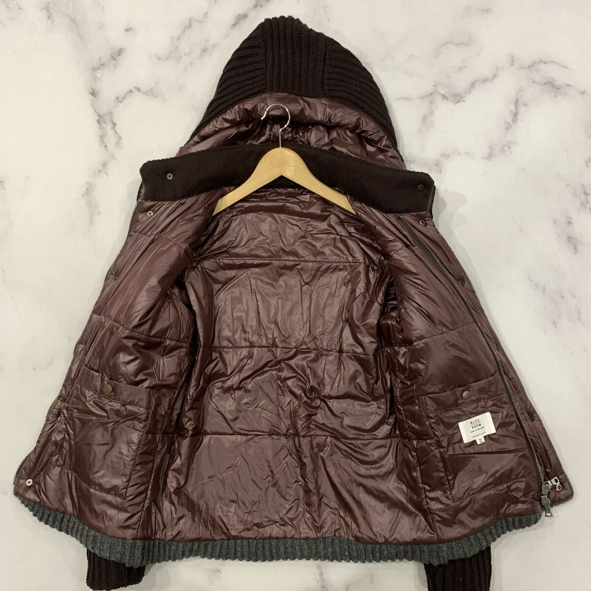 A5 ▼ 洗練されたデザイン 'バイカラー' BLUE WORK ブルーワーク TOMORROWLAND フード脱着可 ダブルジップ ニット ジャケット パーカ M