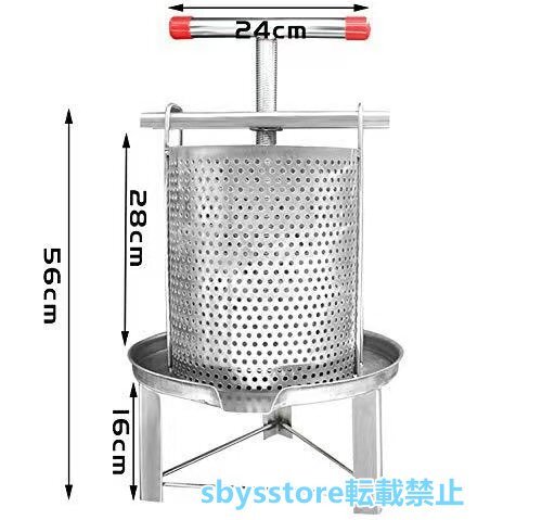 飛沫防止バケット付と :フィルターバレルサイズ:φ24* 高さ28CM 製品サイズ:H56 * φ36 CM、重量:9.5KG 容量:12L メッシュ直径:5MM 溶接はしっかりしており、メッシュは均一で美しいです. 絞ると、飛沫防止バケットはハチミツ、ジュースの飛散を効果的に防ぐことができます。