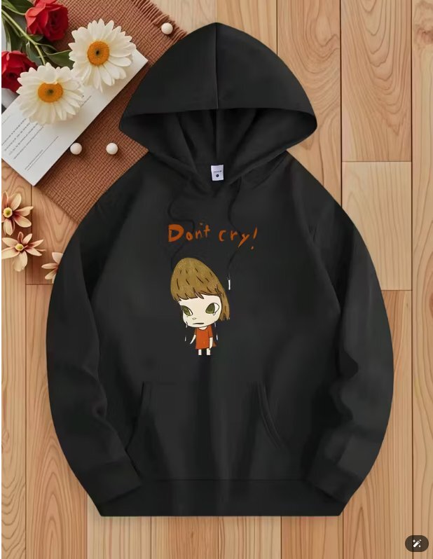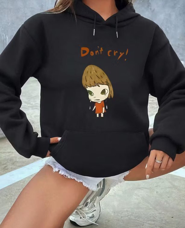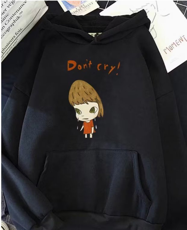 送料無料【新品】奈良美智・プルパーカーメンズXXL Don’t cry!/泣かないで! 黒 赤いワンピースの少女/涙 裏フリース起毛 フーディ