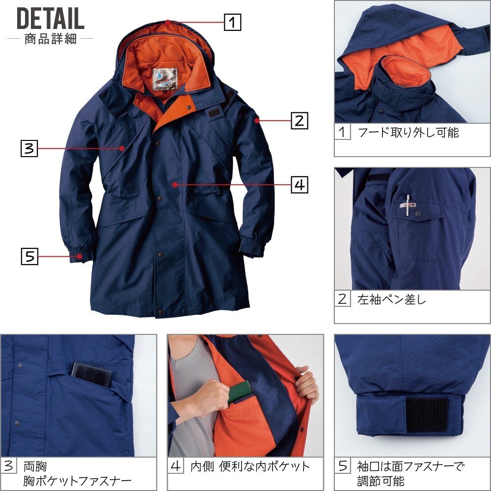 ジーベック 秋冬 防水 防寒 コート 脱着式フード 軽くてムレにくい防水素材 531 色:オレンジ サイズ:LL ★ 対象2点 送料無料 ★