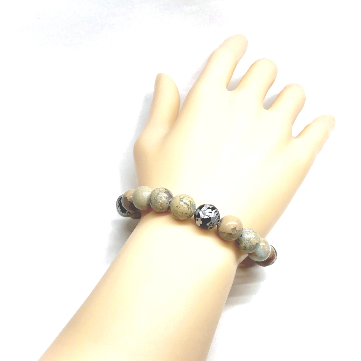 こちらは、四神獣銀彫オニキスとインプレッションストーンを組み合わせたパワーストーンブレスレットです。四神獣は、中国の伝説で4つの方向(東西南北)を守護する神聖な神。四神獣、厄災から身を守り、多くの運気を呼び込むと言われております。石大きさは程よくインパクトのある10mm玉で内周 約17cmです。 数に限りがございますので気になる方はお早めにどうぞ。