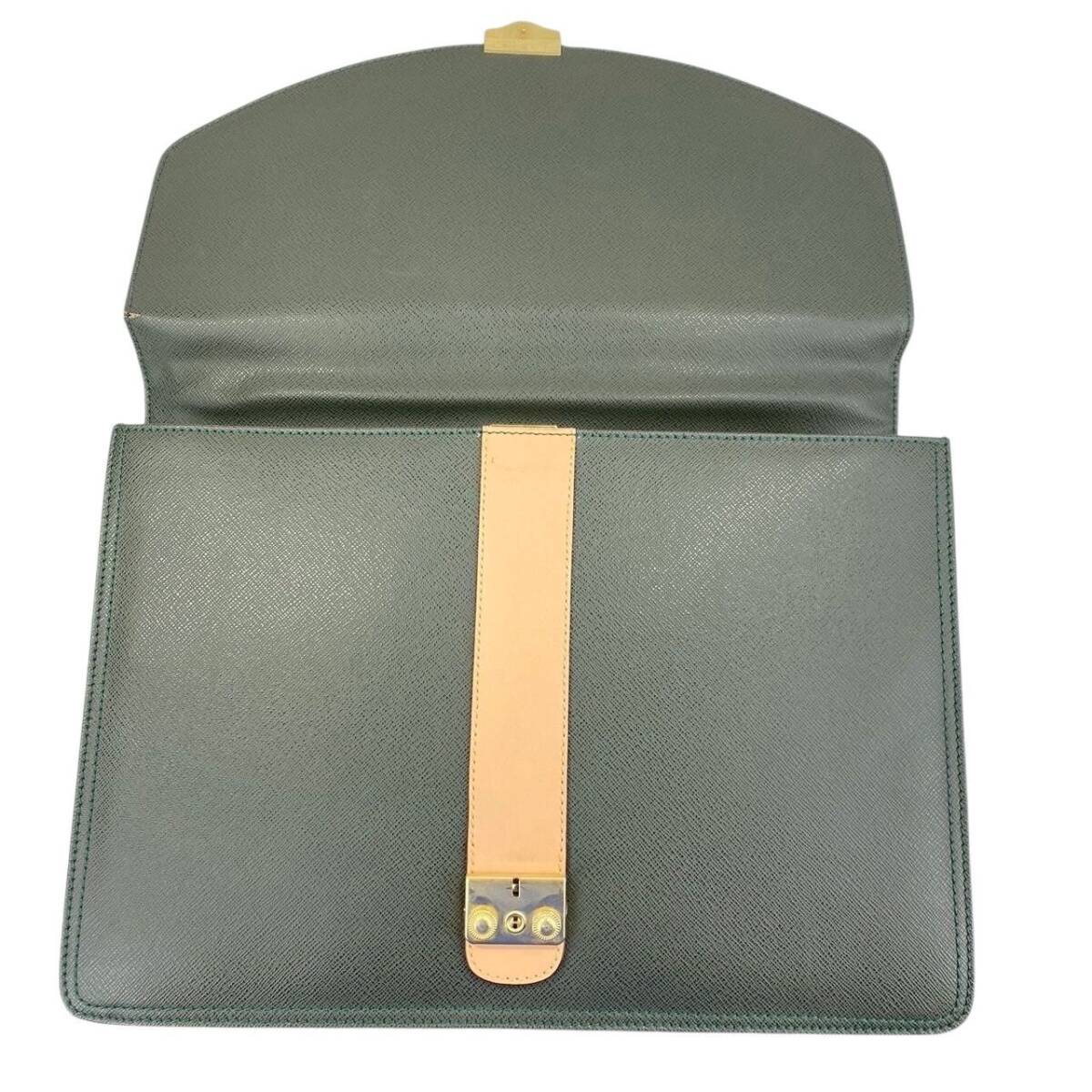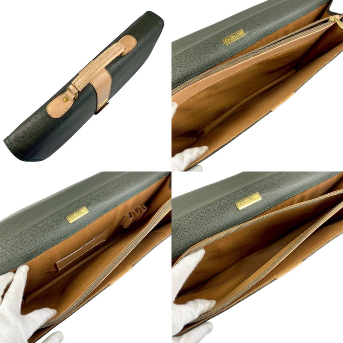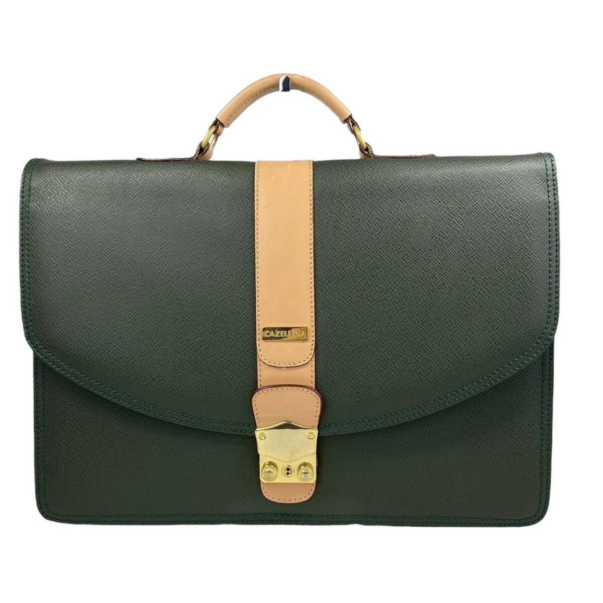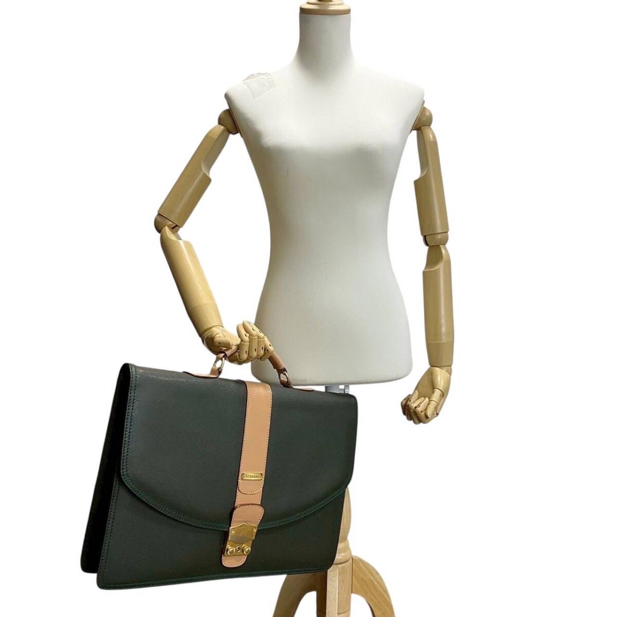 【B3635】 CAZELLINA カゼリーナ ビジネスバッグ ハンドバッグ ビジネス ファスナー グリーン レザー A4収納可