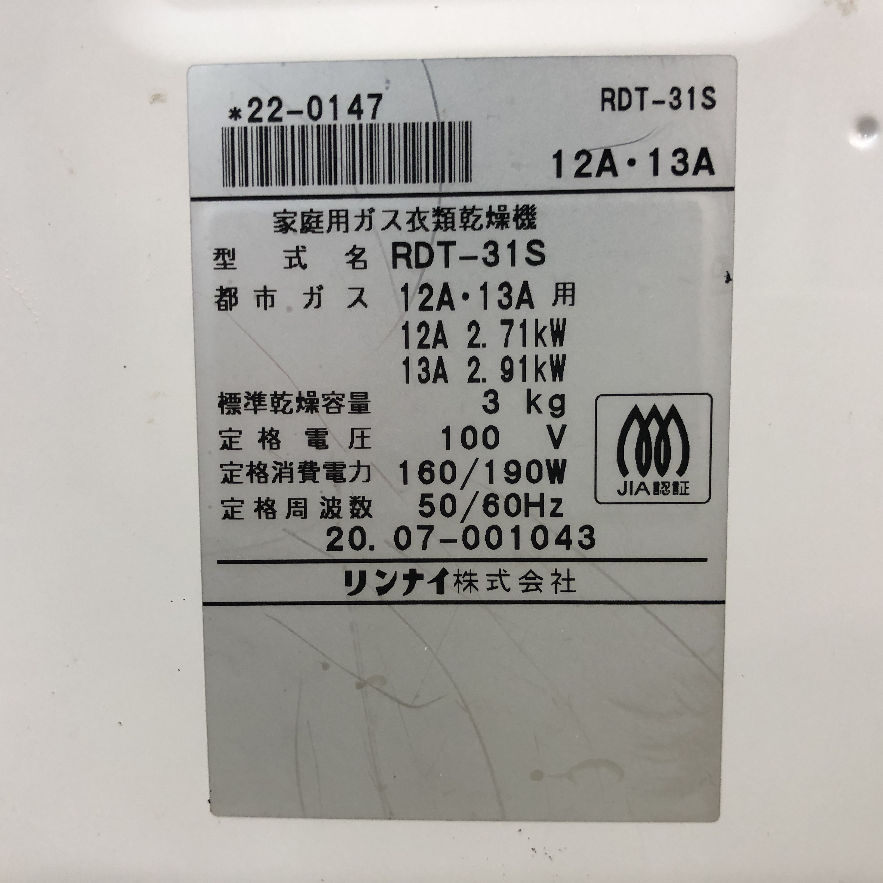 | ドラム回転時に内部で異音があるため、ジャンク品となります。 | ||||||||||||||||||||