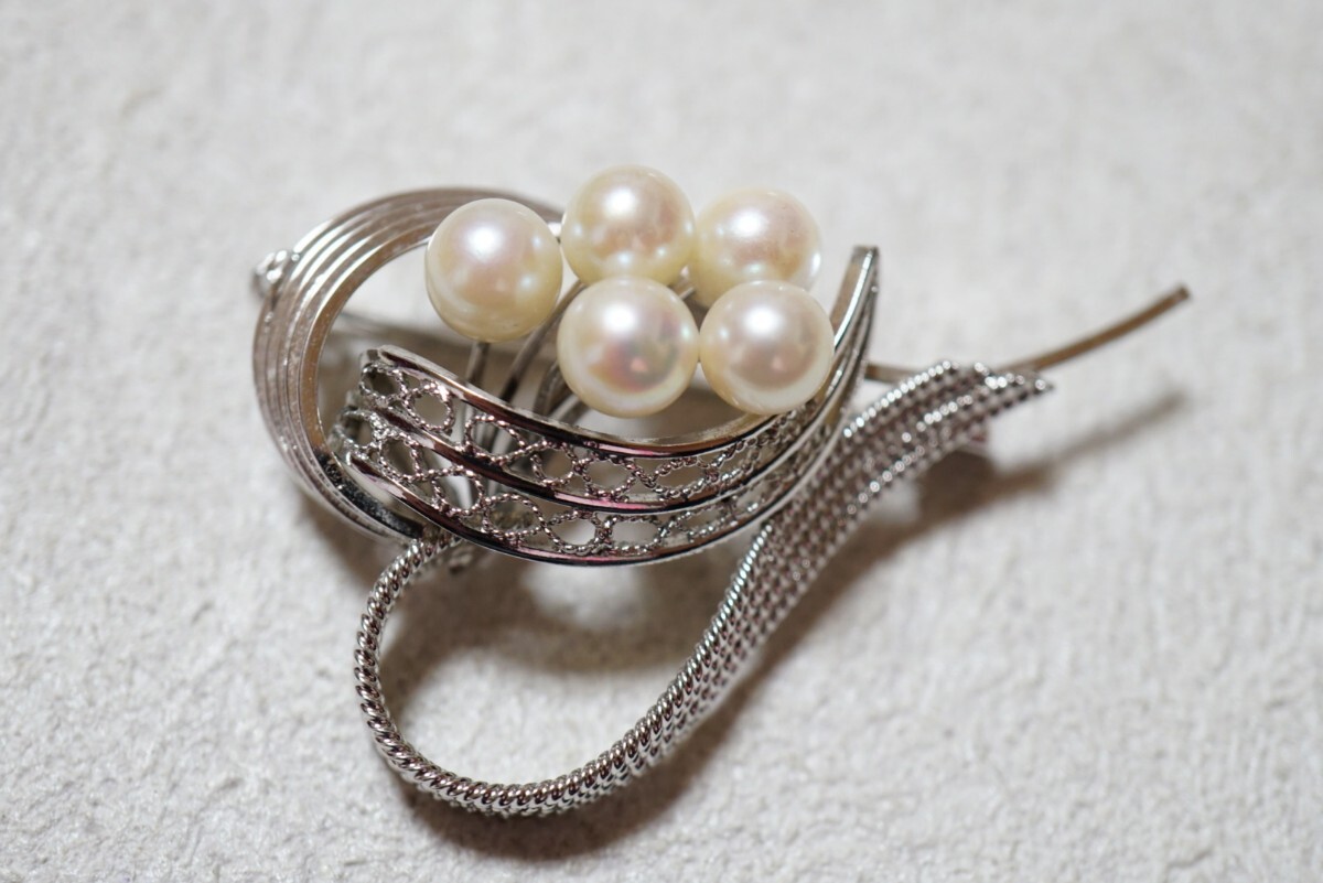 598 アコヤ真珠 本真珠 パール シルバー ブローチ ヴィンテージ アクセサリー SILVER刻印 冠婚葬祭 あこや 装飾品