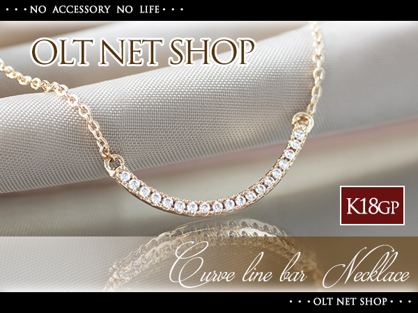 770円スタート/新品/ネックレス/K18GP/ライン/バー/18金/ピンクゴールド/レディース/シンプル/カーブライン/上品/CZ/ジルコニア