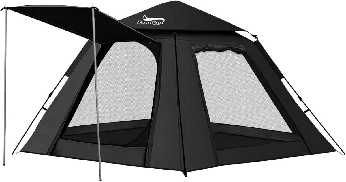 【ワンタッチ・設営簡単】DesertFox テント(3-4人)はワンタッチテントで、組み立て簡単で初心者に最適です。伸縮できる自動ブラケット構造を採用し、ブラケットを展開すると数秒間設営完成します。両手を解放し、楽しい体験をお届けします。