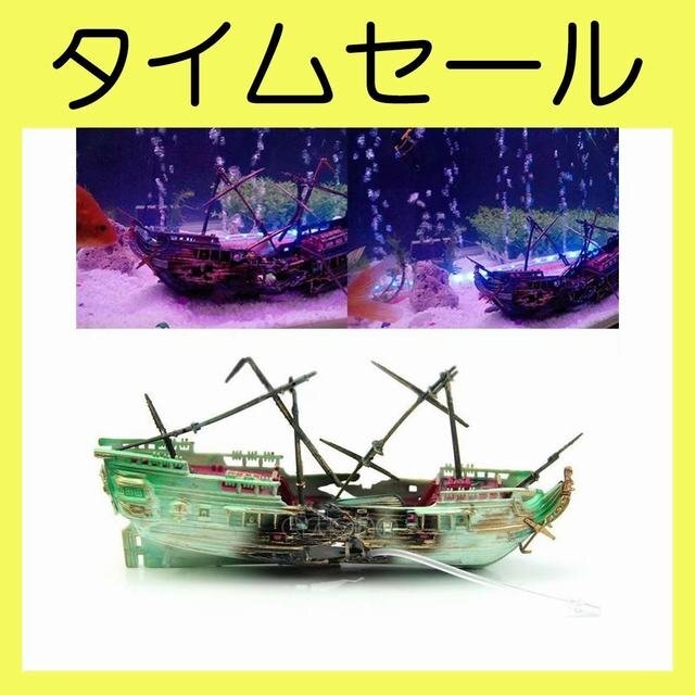 細部まで巧妙に再現されている難破船のアクアリウムフィギュアです。エアーポンプに接続すると海賊船のボードの中央から水泡が放出され、よりゴージャスで高級感が増します。熱帯魚や金魚、メダカなどの観賞魚の隠れ家、水槽飾りとしてデコレーションに最適です。 船の繊細なディテールでリアルに作られており、水槽に入れるだけで深海世界の本格的で神秘的な空間が楽しる水槽アクセサリーです。アンティークでかつ、程よく目立つ色彩に仕上げているので、水槽に沈めても存在感が出て綺麗です。 注意事項: エアーポンプは付属しません。 軽い素材のため、砂などで固定する、もしくは船底に重りを入れないと浮かんでしまう場合があります。