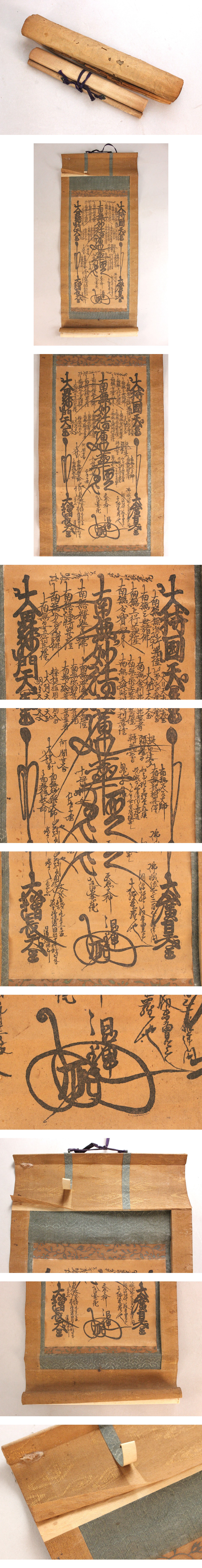 [245880]【版画】 仏教 掛軸 2点 日蓮曼荼羅 仏画〈十三仏像 弘法大師像 切支丹不動像〉紙本版摺◆仏教美術/古画/木版/護符/時代/うぶ品