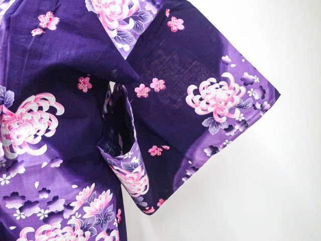 リサイクル商品の為、左前袖に薄汚れがございますが着用可能です。 地色は紫です。 1枚目の画像が近いお色かと思われます。 素材は綿です。 |