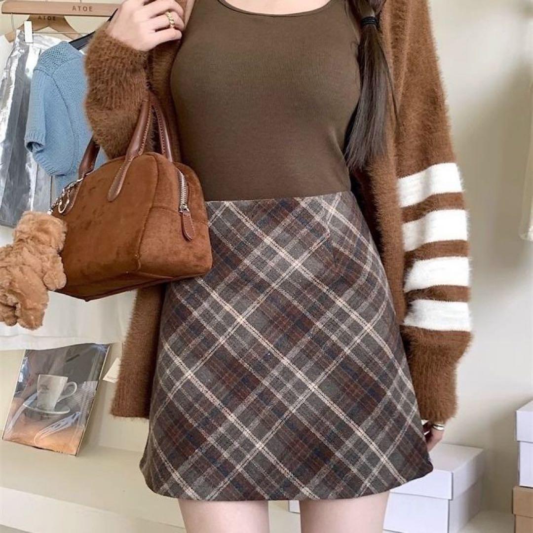 秋冬コーデにぴったりのチェック柄タイトミニスカートです。