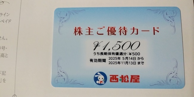 ☆【送料無料】西松屋 株主優待カード 1500円分 2025/11月13日迄