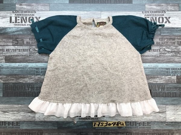 ブーフーウー キッズ チュール フリル 袖リボン 半袖ニットソー P グレーグリーン です。
