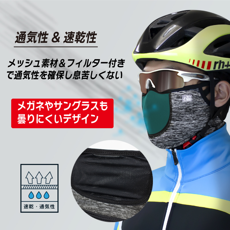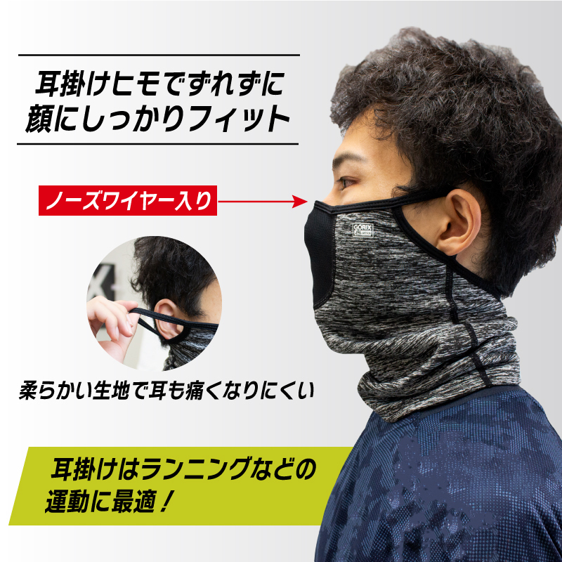 スポーツなど冬の冷たい雨風から顔をガードするマスク。 |