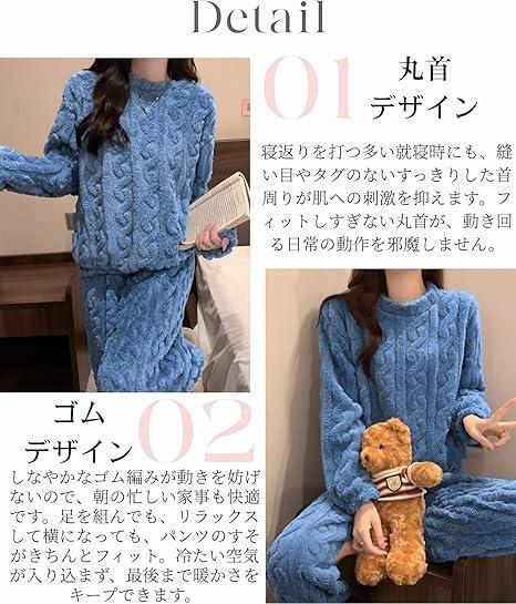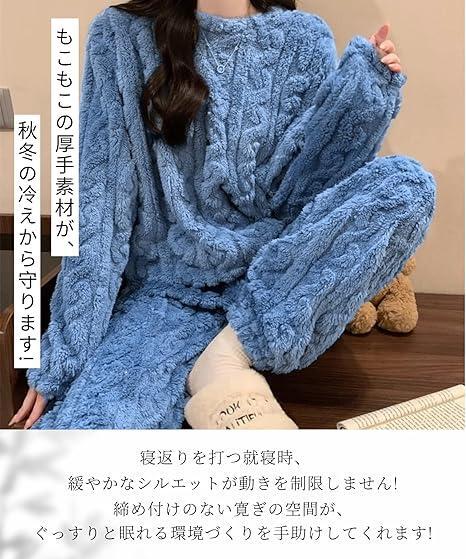 | 特徴 | もこもこ ジャカード ふわふわ パジャマ レディース あったか フランネル ケーブル柄 長袖 長ズボン 防寒 保温 暖かい 裏起毛 厚手 秋冬 |