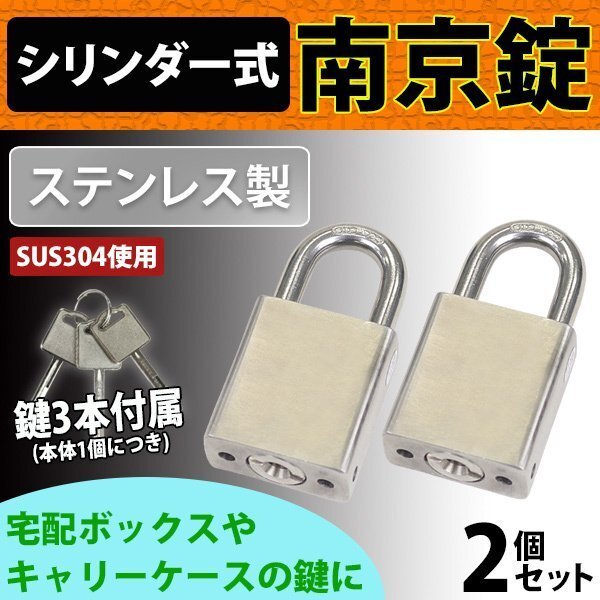 商品名 | 送料無料 シリンダー式 ステンレス製 南京錠 幅約40mm 2個セット シャックル径約8mm 鍵3本付属 SUS304 オールステンレス ステンレス シリンダー 鍵式 ダブルロック コンビネーション ガードロック 錠前 盗難防止 防犯 宅配ボックス ロッカー ポスト 倉庫 鍵 nanking0402p |