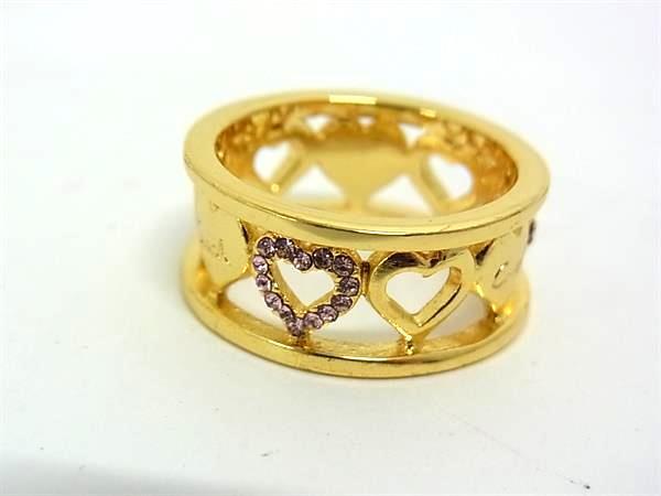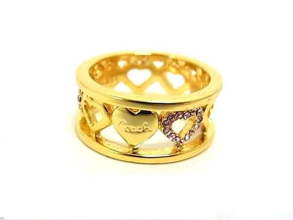 ■極美品■ COACH コーチ ハート ラインストーン リング 指輪 アクセサリー 約12号 レディース ゴールド系 DJ0238