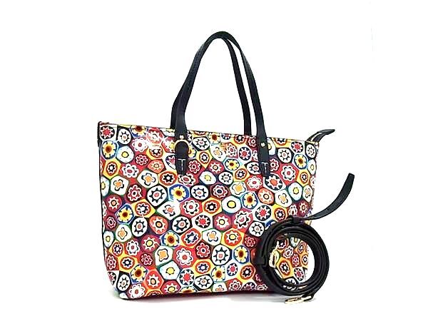 1円 ■美品■ TORY BURCH トリーバーチ PVC×レザー 2WAY ハンドバッグ トート ショルダーバッグ レッド系×マルチカラー BN4464