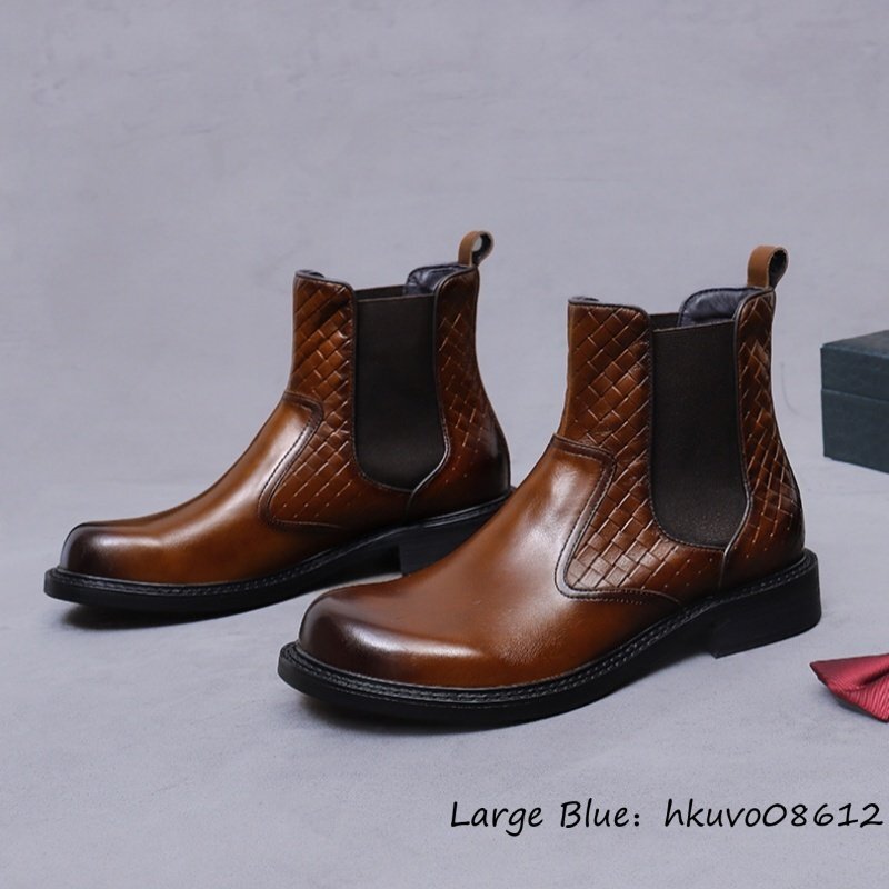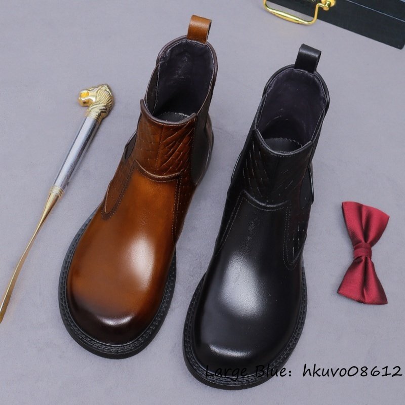 最上級◆メンズ チェルシーブーツ 本革 高級牛革 イギリス風 マーティンブーツ ビジネスシューズ ショートブーツ ブーツ ブラウン 27.5cm
