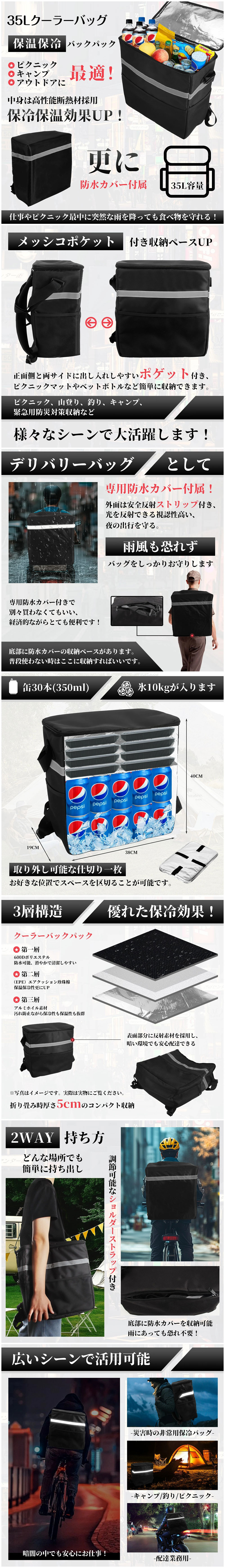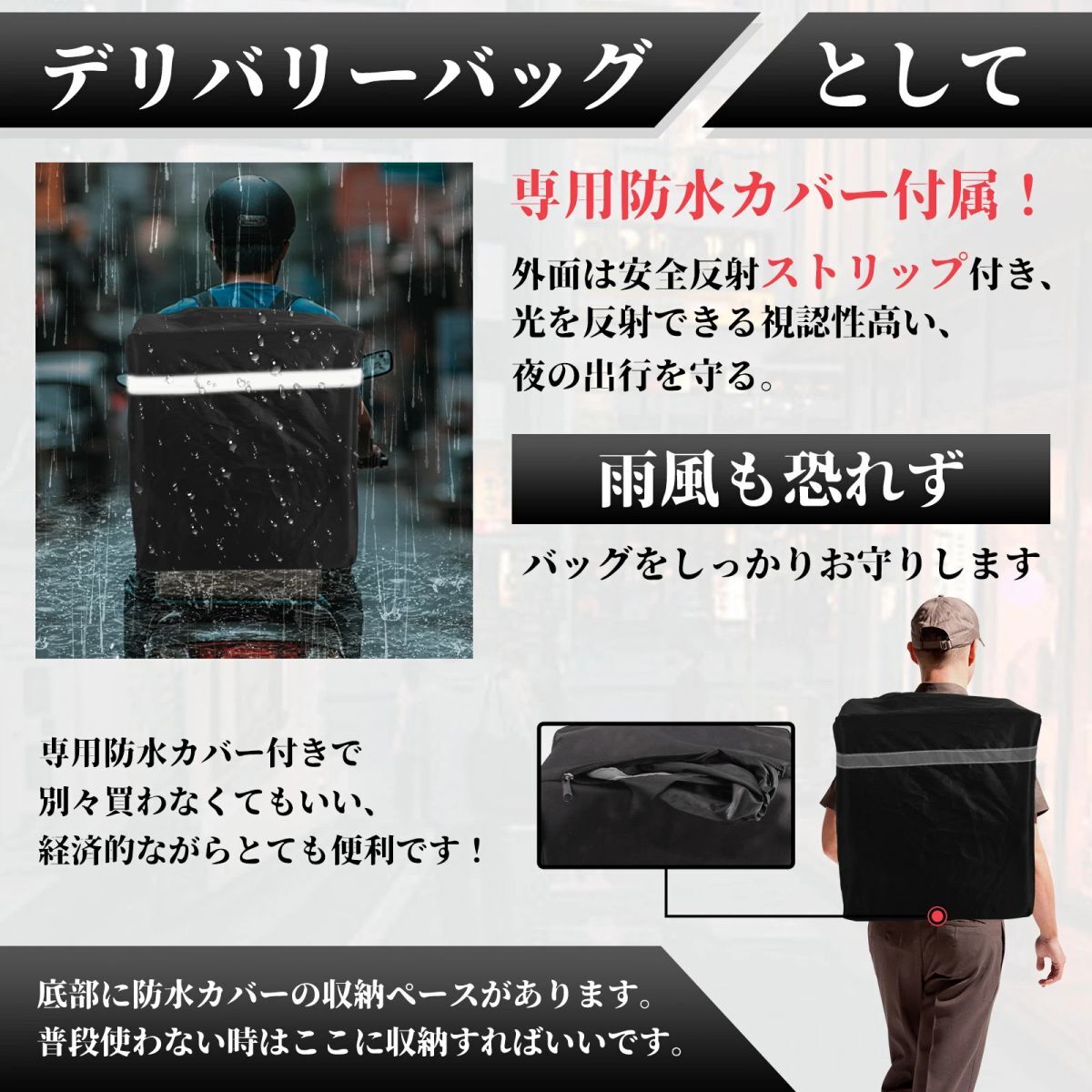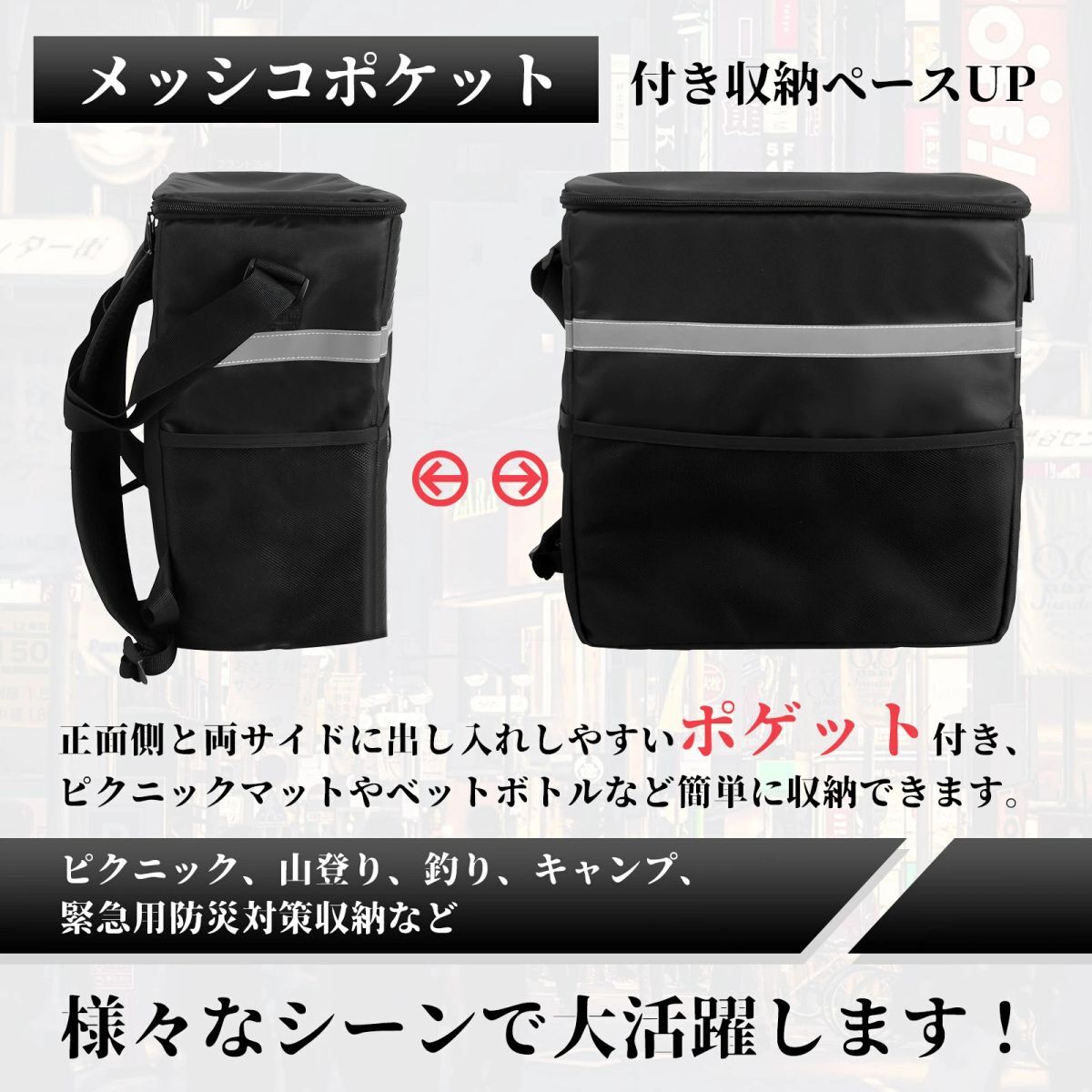 該当保冷バックパックはアウトドア、ピクニック、キャンプ、通勤、業務用(食品配送)など、幅広い用途で活用可能。デリバリーバッグとして使用時、外面は安全反射ストリップ付きので、光を反射できる視認性高い、夜の出行を守られます。