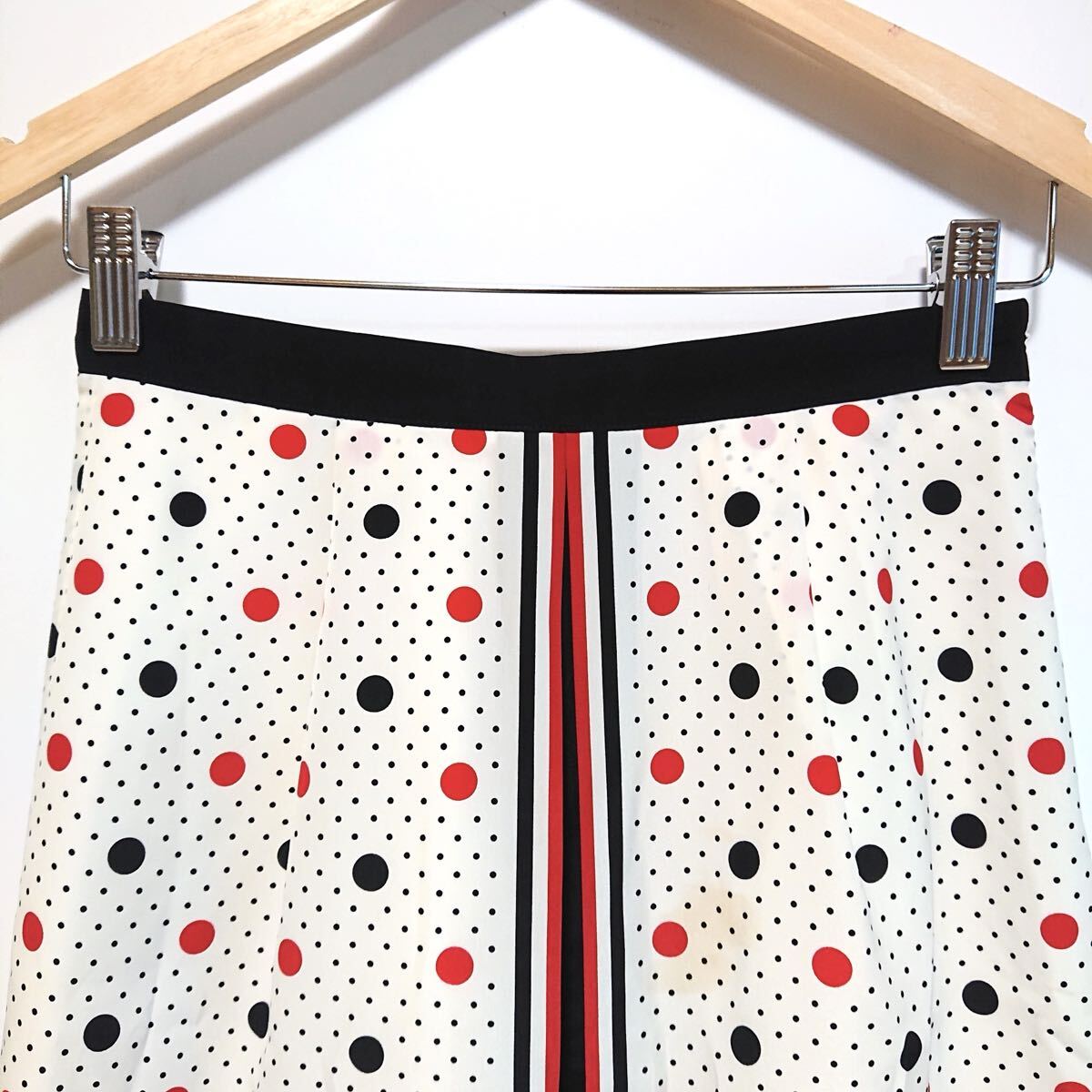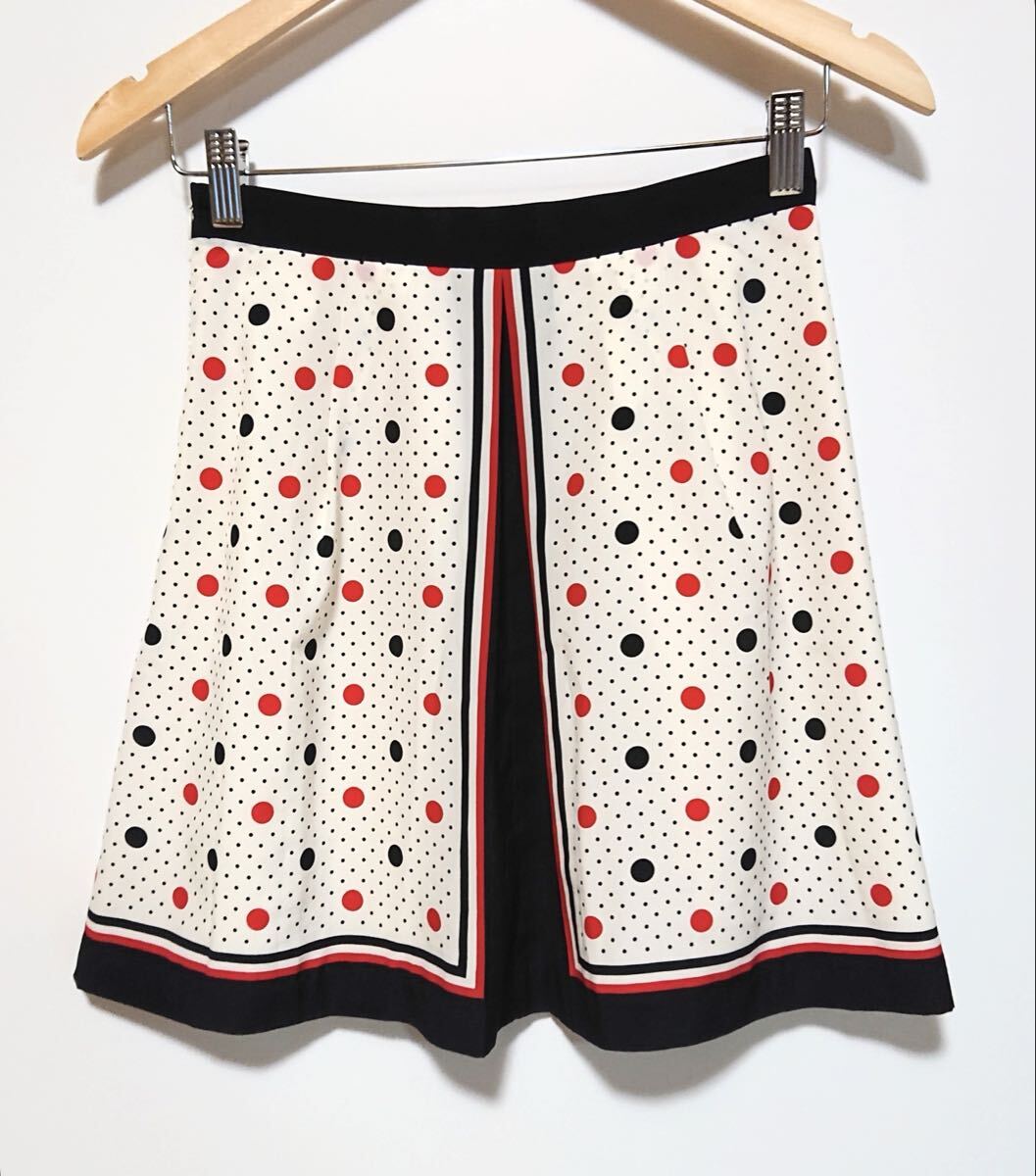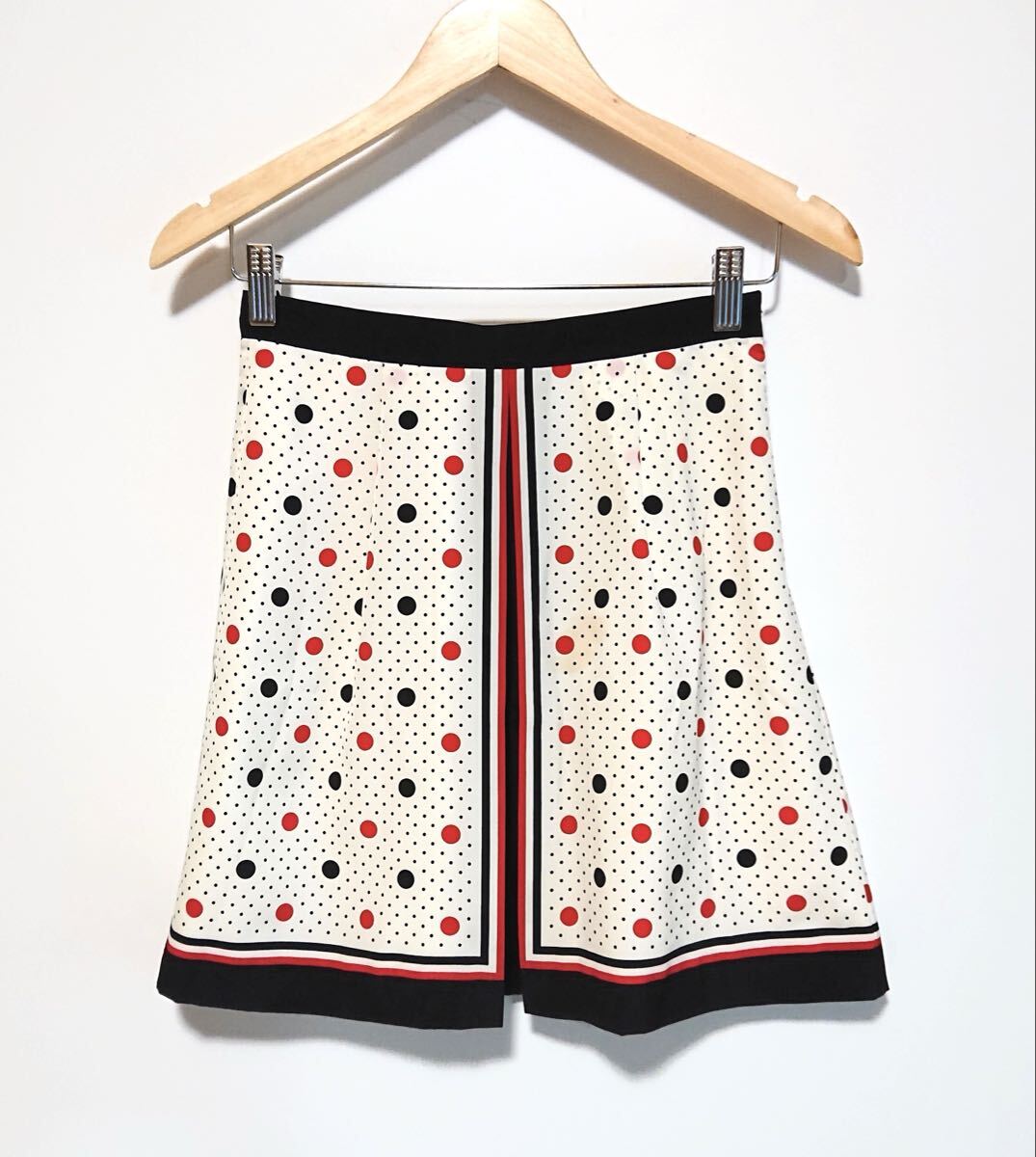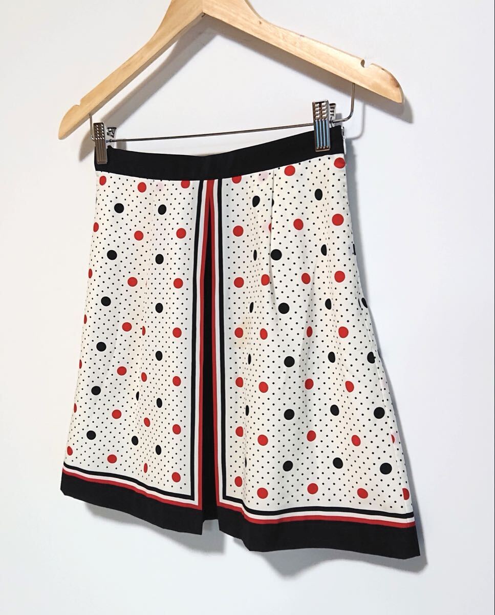 h4612gg 日本製 agnes b./アニエスベー サイズ38(S〜M位) ミニスカート ドット柄 オフホワイト×レッド×黒 レディース おしゃれ レトロ
