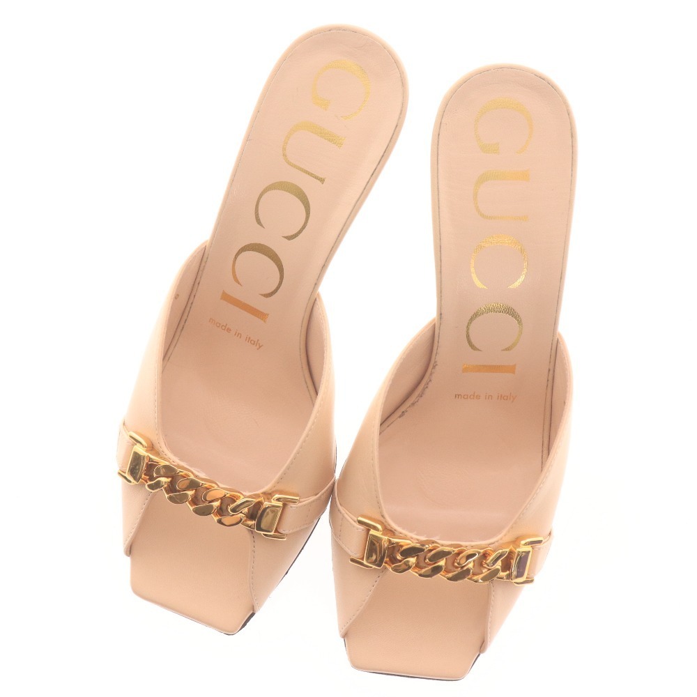 グッチ サンダル ミュール 626769 靴 チェーン ピンヒール レディース 35(22.5cm相当) ベージュ 付属品:写真のものが全てです ●表記サイズ:35 ○実寸 アウトソール:23cm くつ幅:8cm ヒール(かかと高さ):7.5cm ⇒ アパレル商品のカラー基準・採寸方法・海外サイズ換算表 (参考)トルソー(マネキン)は男女ともMサイズです。 素材:品質の記載は見受けられません。 | ||||||||||||||||