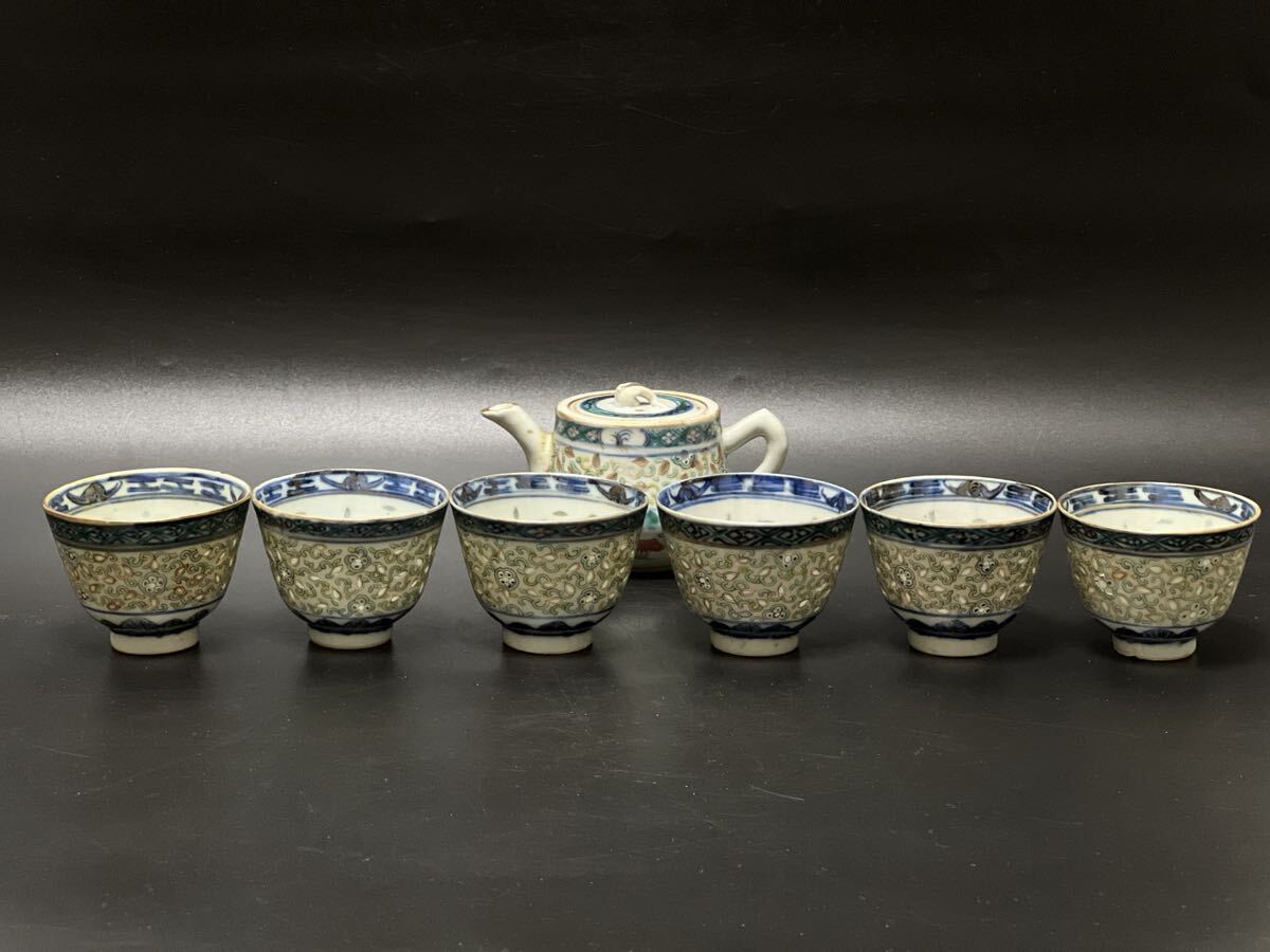煎茶道具 中国茶器 中国景徳鎮製 蛍焼 染付 大清光緒年製 康熙年製 急須 煎茶碗 湯呑