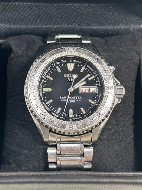 ⑰ 完動美品 [二次電池新品] SEIKO【セイコー ワンピースケース LANDMASTER AGS 5M23-6A20 黒文字盤】