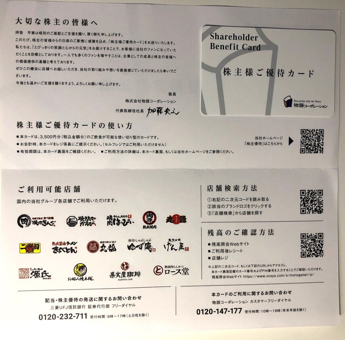 物語コーポレーション 株主様ご優待カード 3,500円分