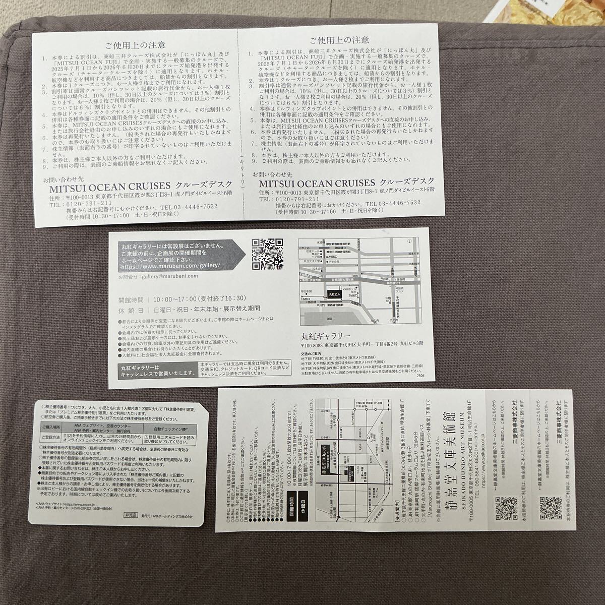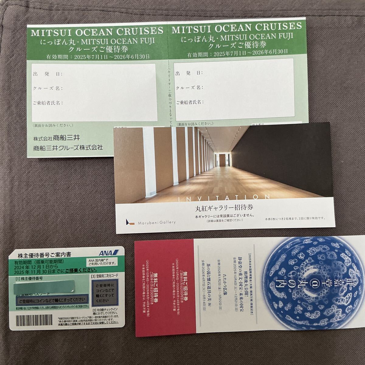 ANA優待券 2025/11/30期限、にっぽん丸優待券 2026/06/30期限、丸紅ギャラリー招待券 期限なし、静嘉堂@丸の内招待券 2026/06/14期限、