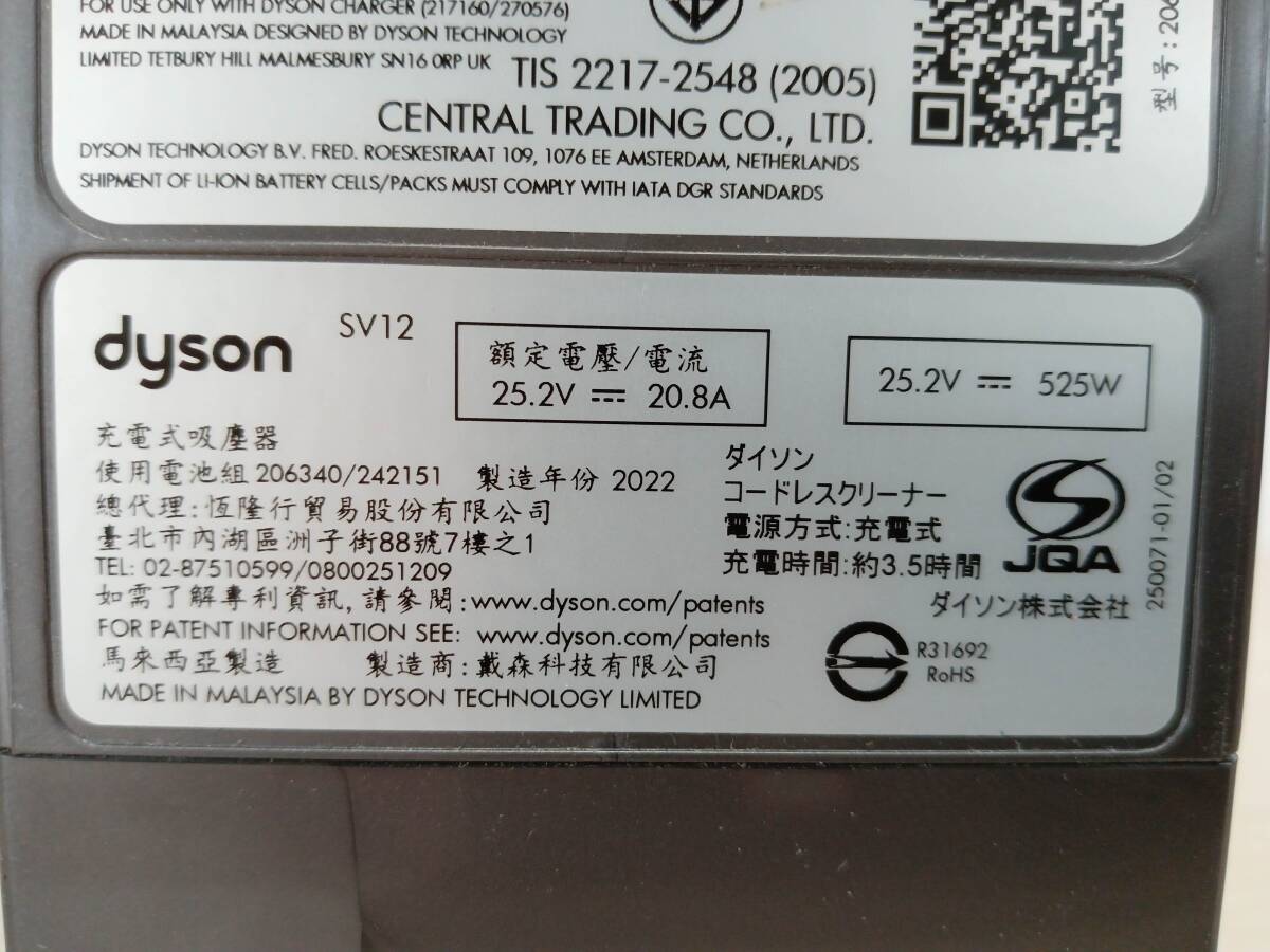 | 【BE-3290】dyson ダイソン SV12 V10 2022年製 コードレスクリーナー 掃除機 通電確認済 簡易清掃済 | ||