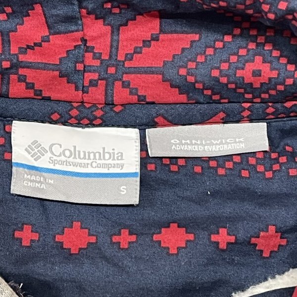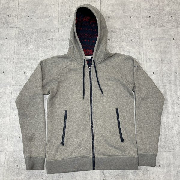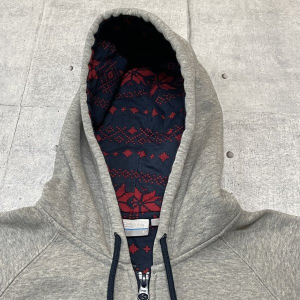 COLUMBIA ジップアップパーカー ラグランスリーブ アームロゴ コロンビア  フーディー フーデッド スウェット トレーナー 石瀬7527 ジッパー付きポケット 刺繍 フード裏エスニック柄 フリース裏地 OMNI-WICK オムニウィック