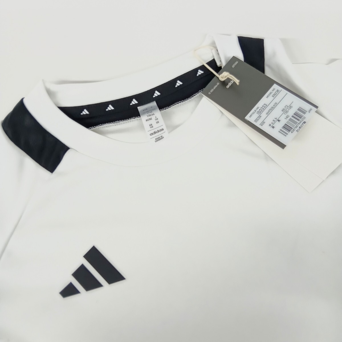未使用■アディダス adidas キッズ 半袖シャツ Tシャツ 140 ホワイトブラックライン IS0333
