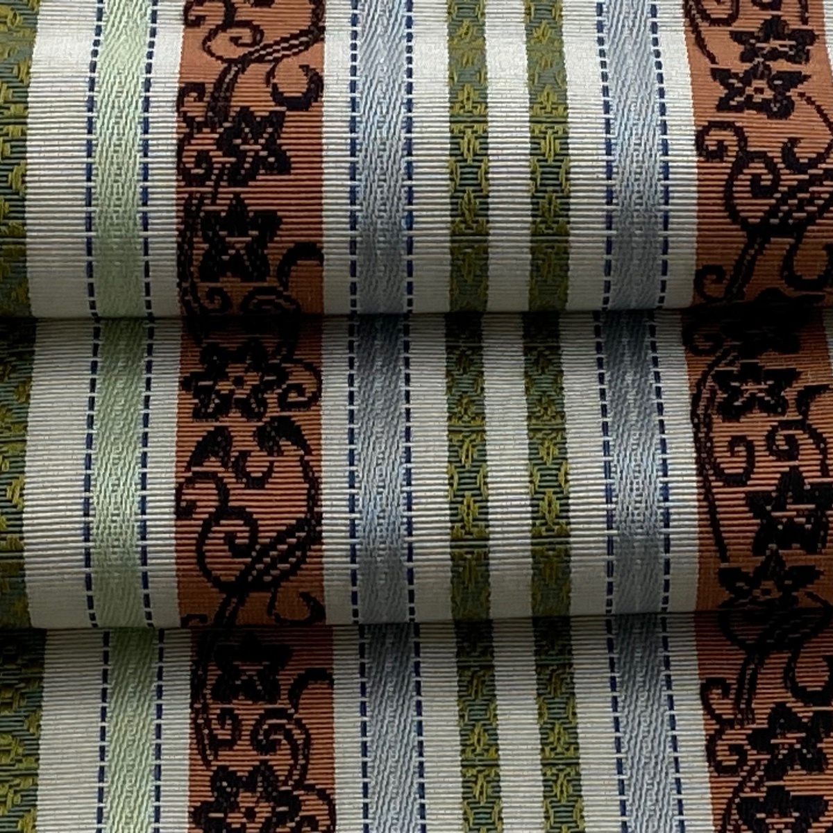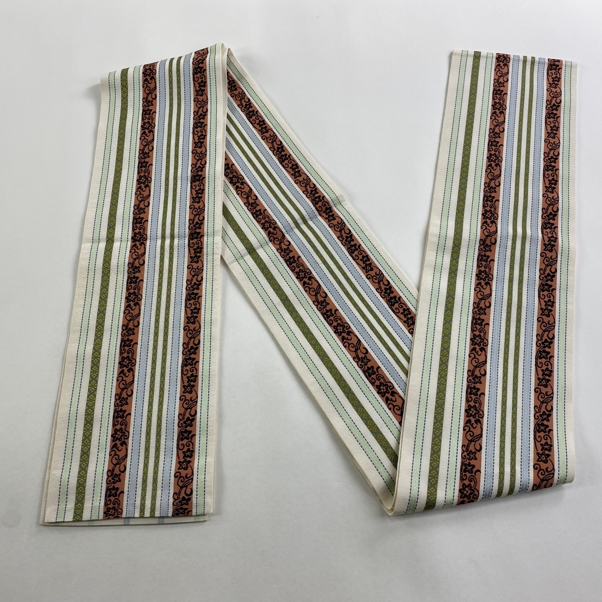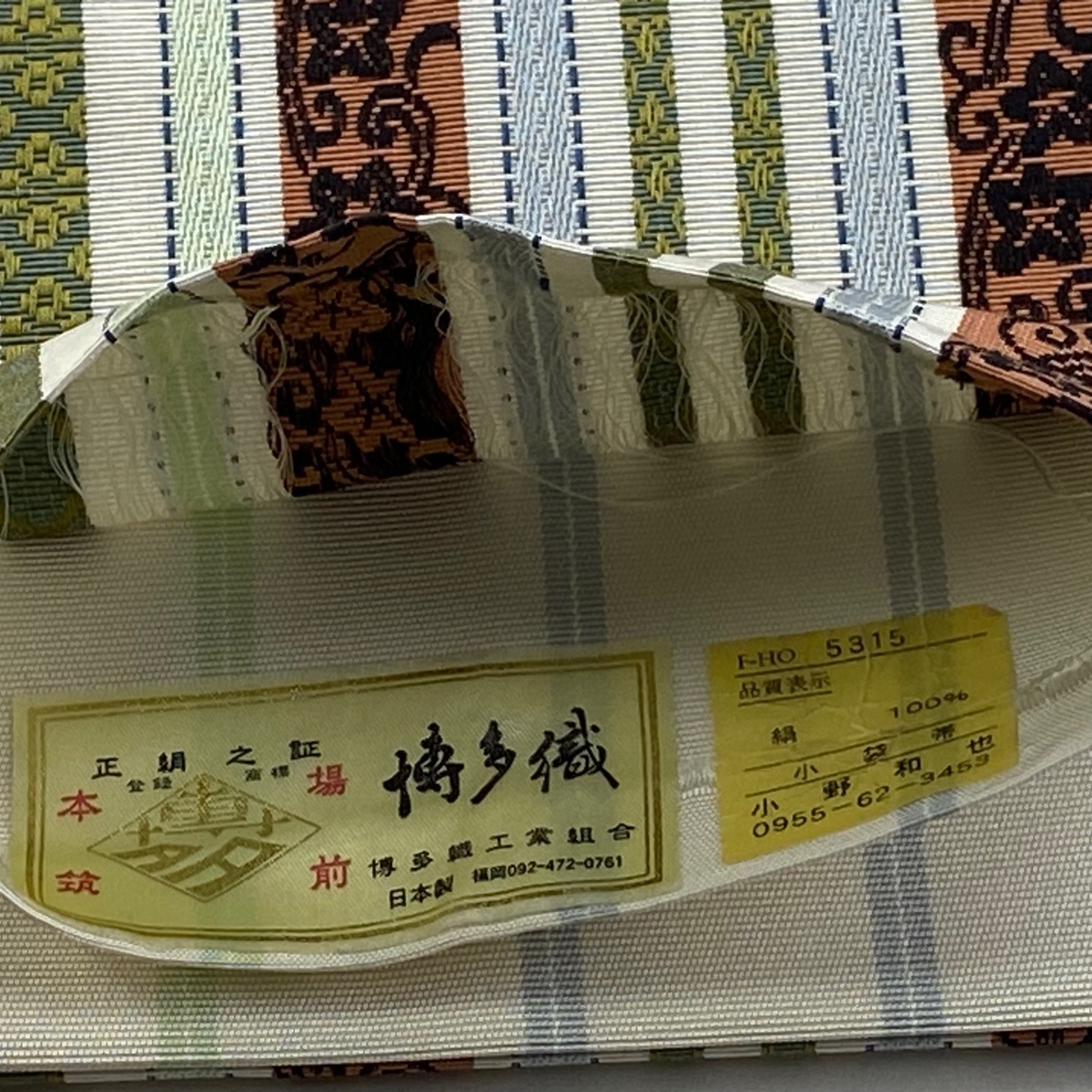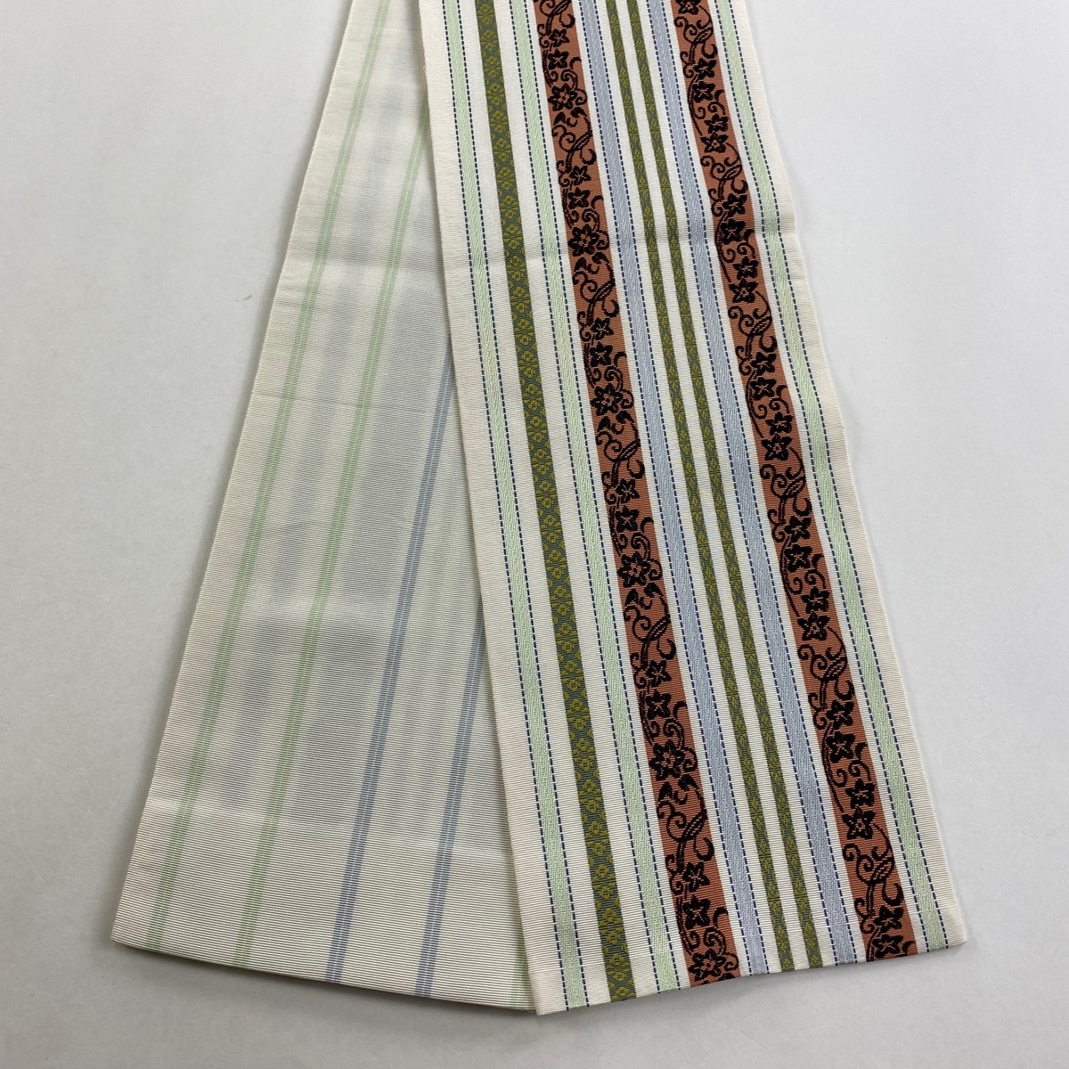 半幅帯 秀品 博多織 証紙 花唐草 縞 クリーム 正絹 【中古】 |