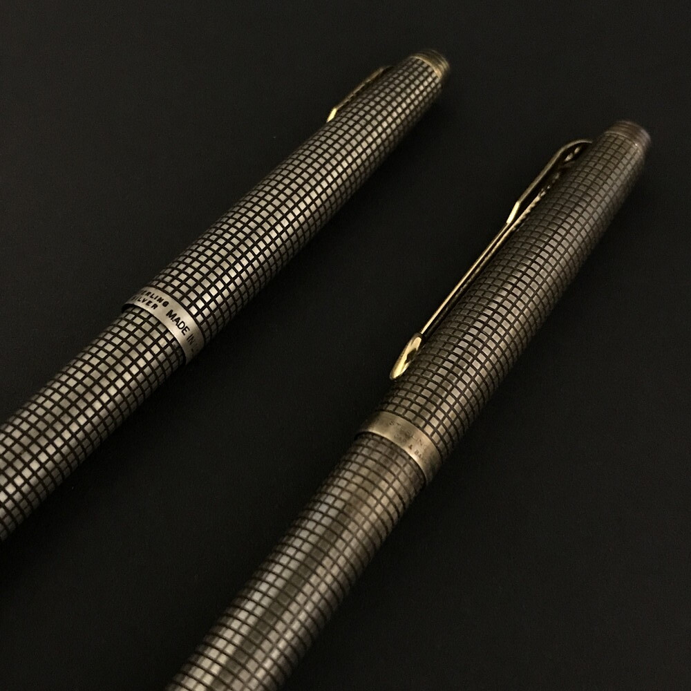 1円 PARKER パーカー 75 シズレ SV925 格子柄 ノック式 ボールペン ペン 文房具 筆記用具 2点セット シルバー /ZX1320