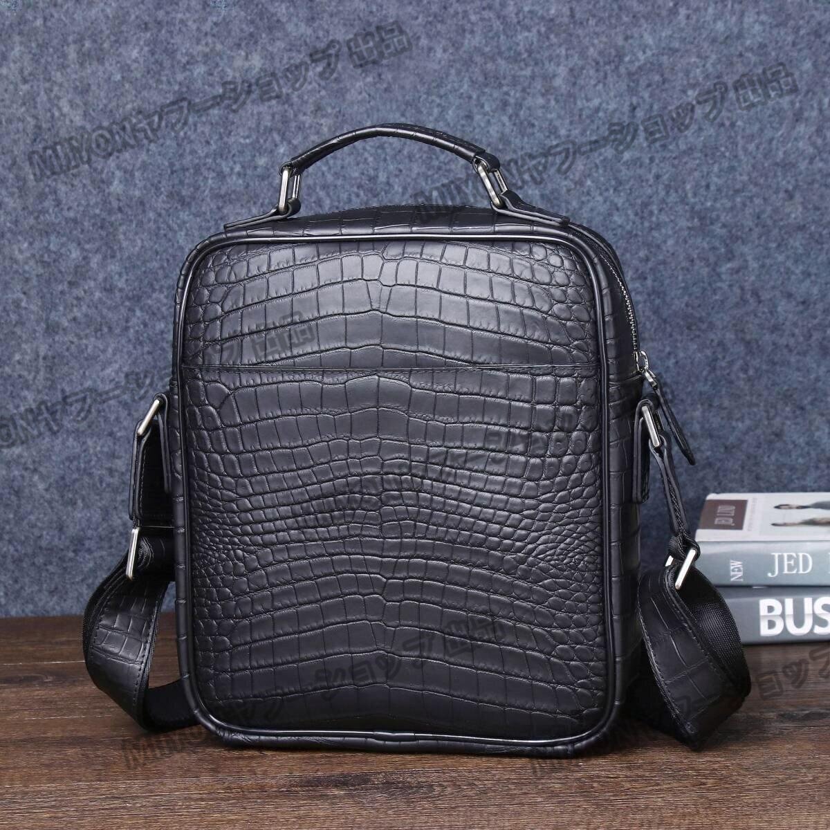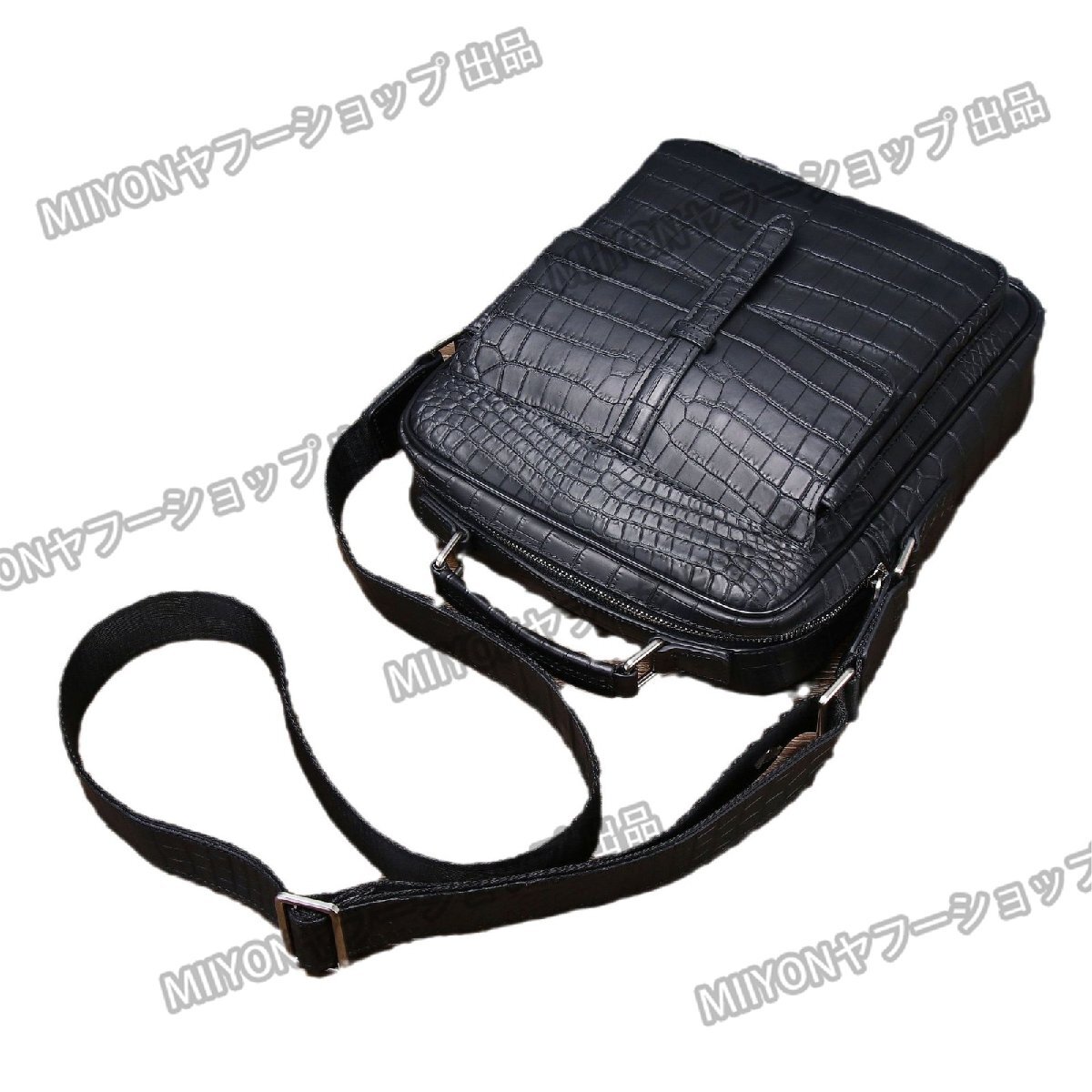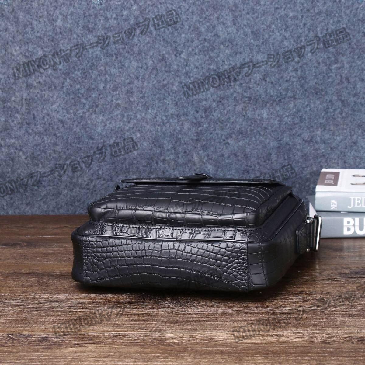 マット仕上げ クロコダイル本革 ワニ革 メンズ ショルダーバッグ 肩掛け メッセンジャーバッグ 斜めがけ 腹部革 センター取り カジュアル