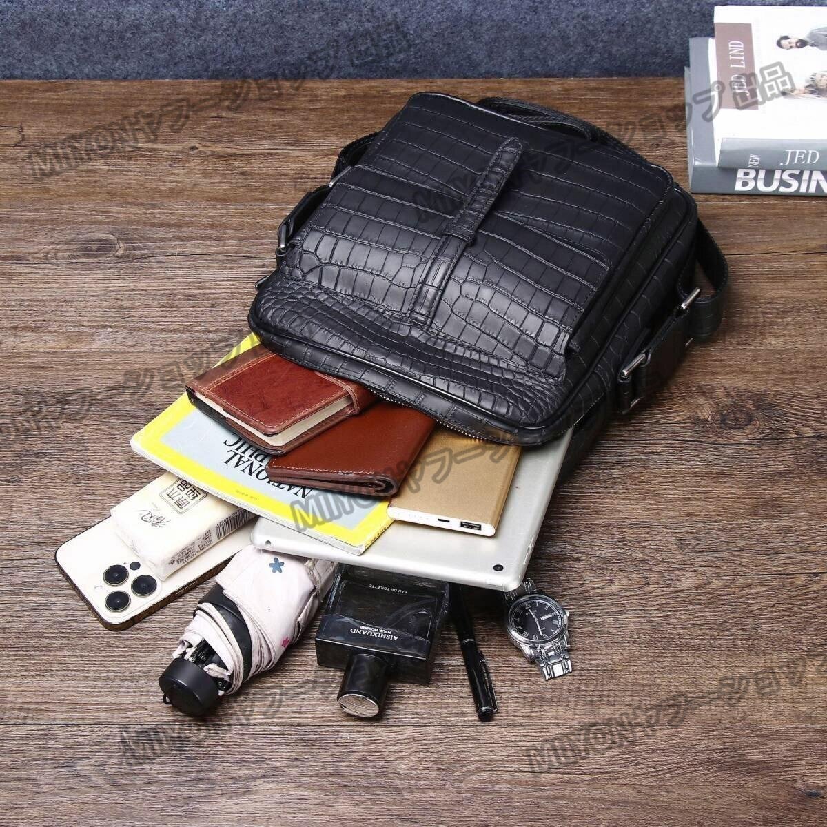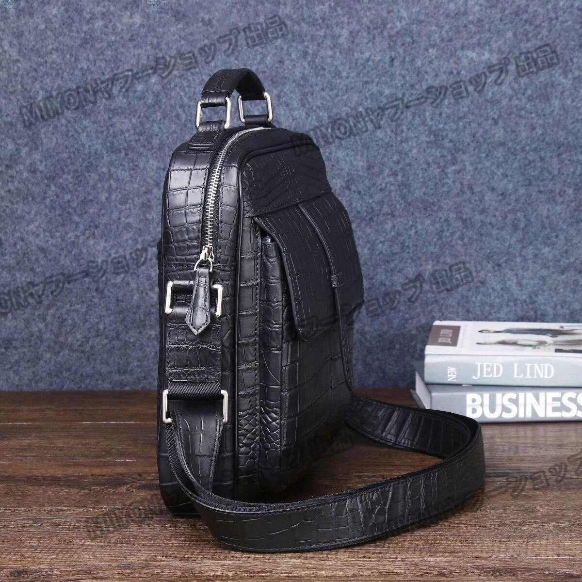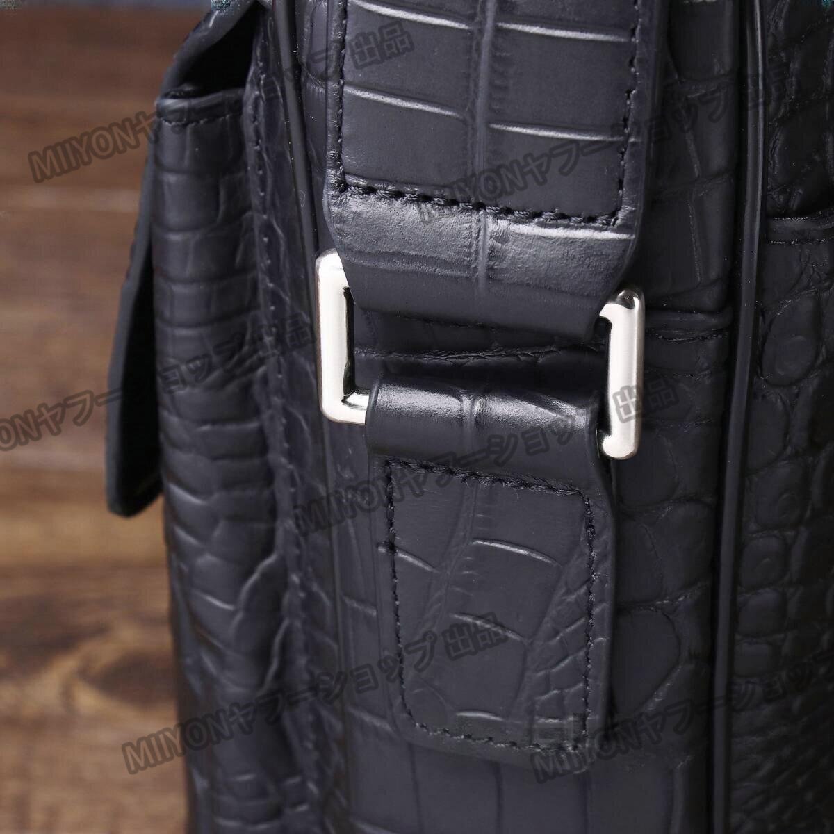 マット仕上げ クロコダイル本革 ワニ革 メンズ ショルダーバッグ 肩掛け メッセンジャーバッグ 斜めがけ 腹部革 センター取り カジュアル