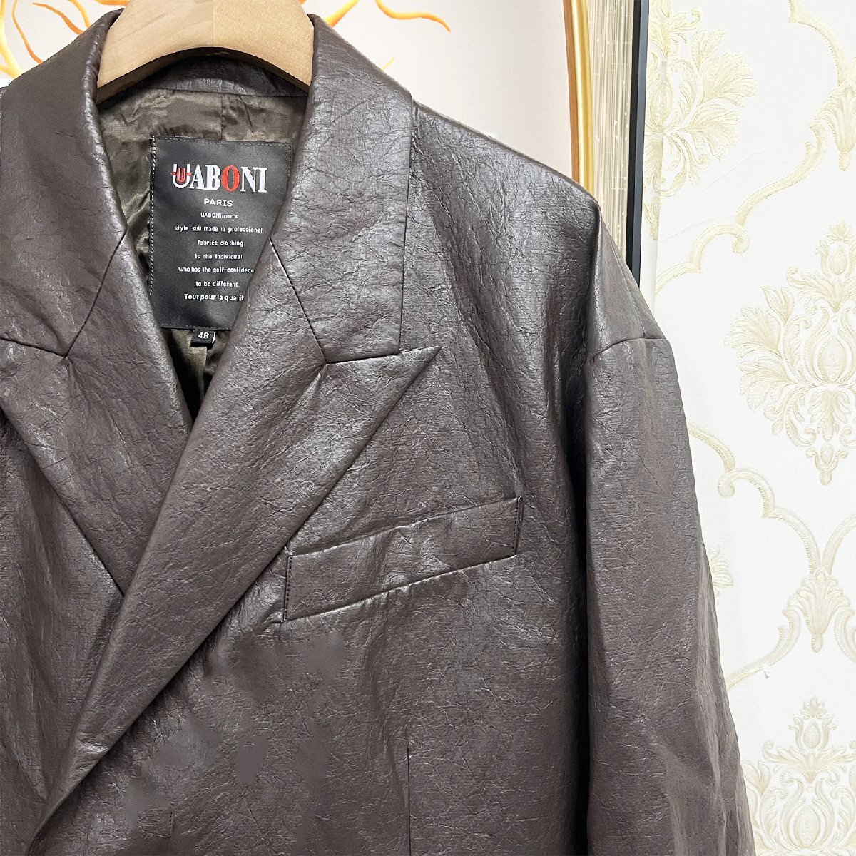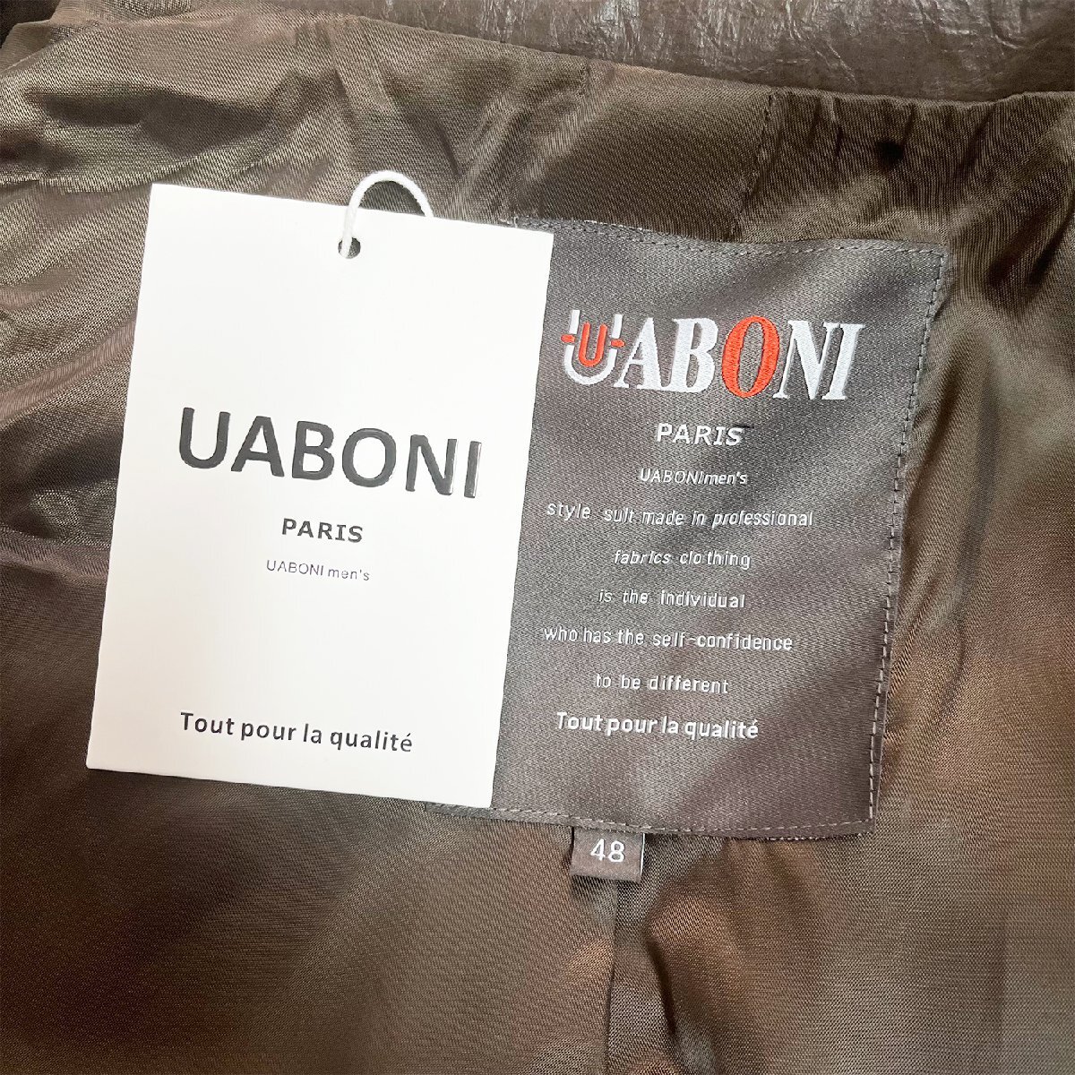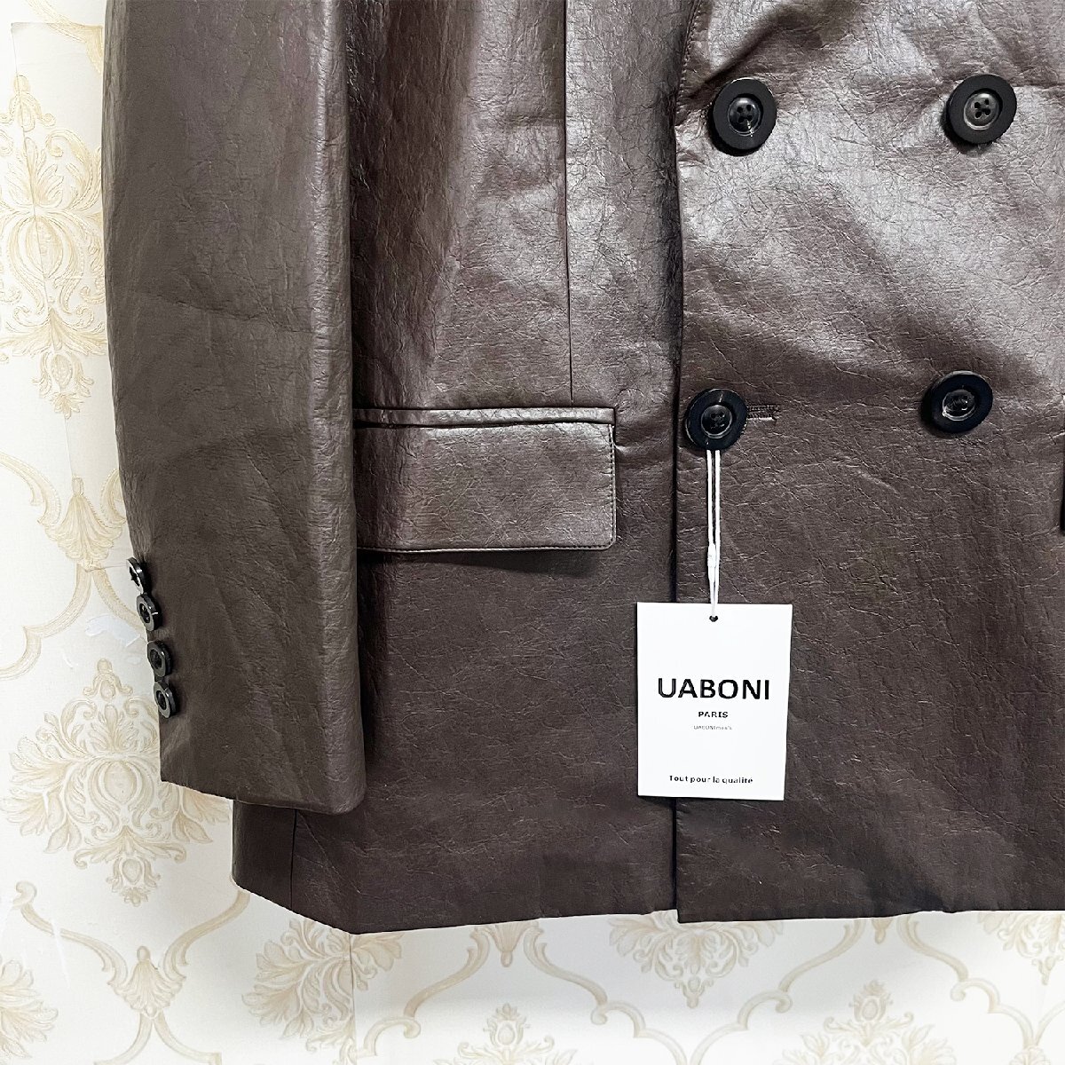 最高峰EU製&定価13万◆UABONI*ユアボニ*ジャケット*フランス*パリ発◆ソフト 撥水 無地 PUレザー チェストコート ブレザー 春秋 L/48