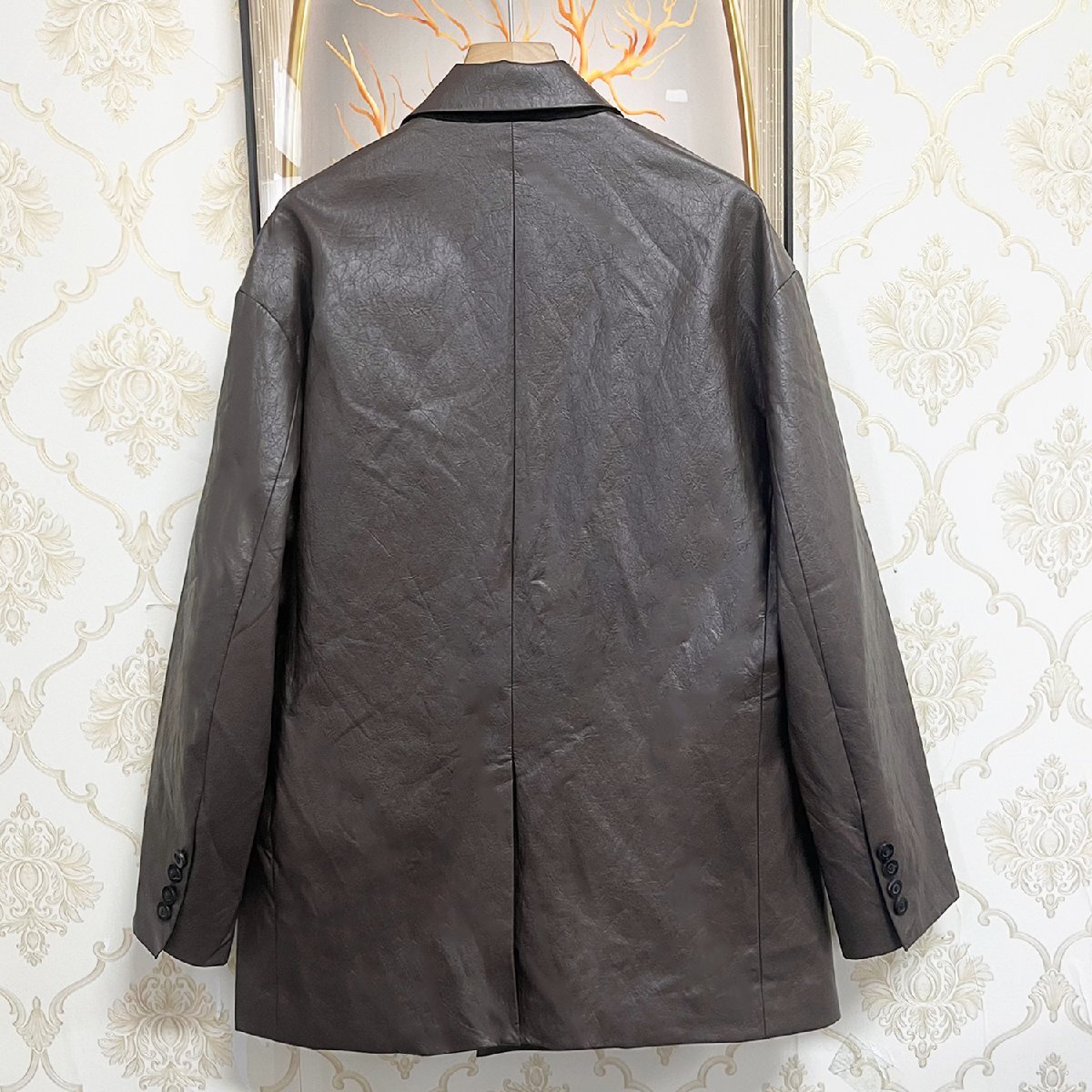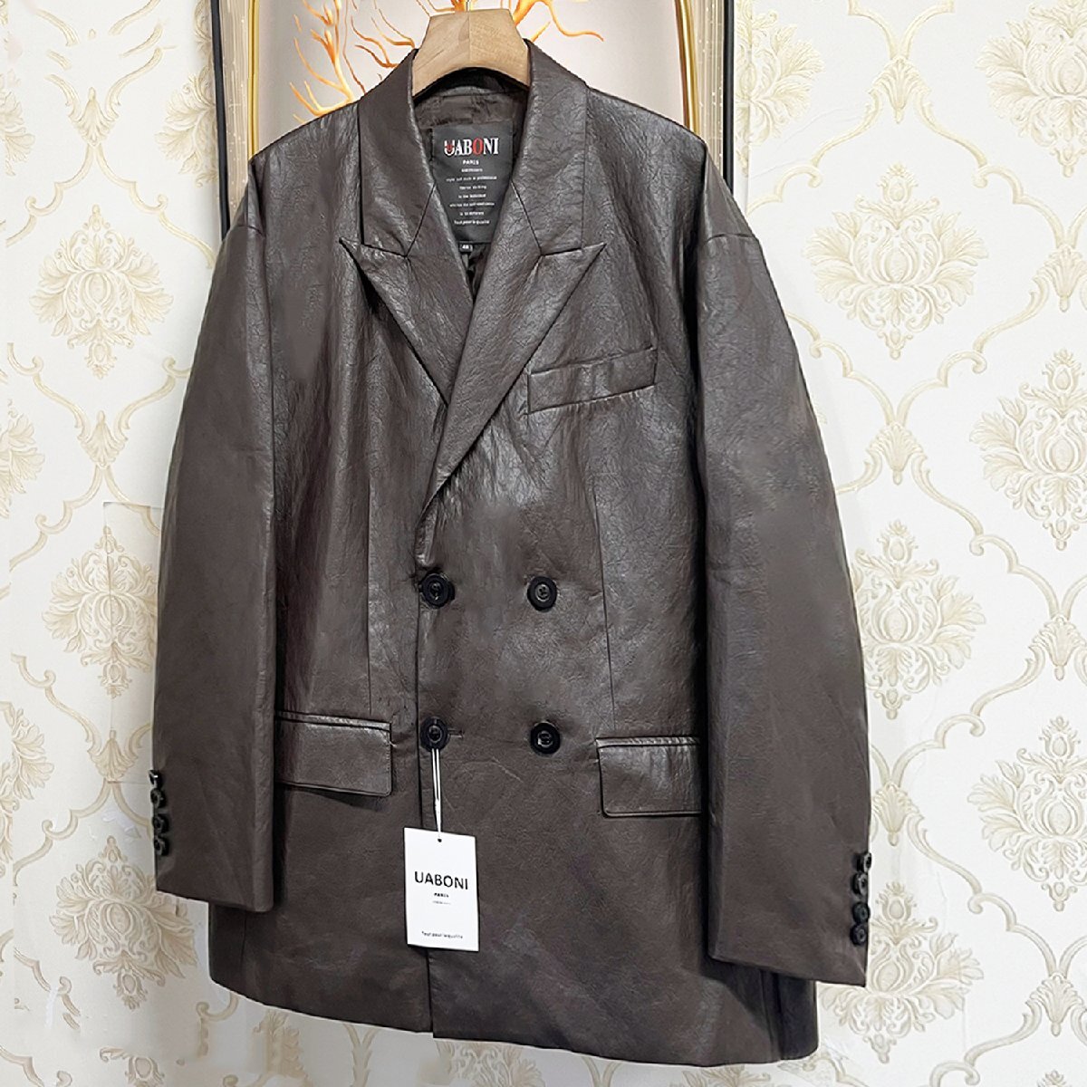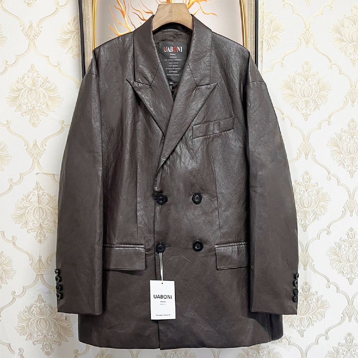 最高峰EU製&定価13万◆UABONI*ユアボニ*ジャケット*フランス*パリ発◆ソフト 撥水 無地 PUレザー チェストコート ブレザー 春秋 L/48
