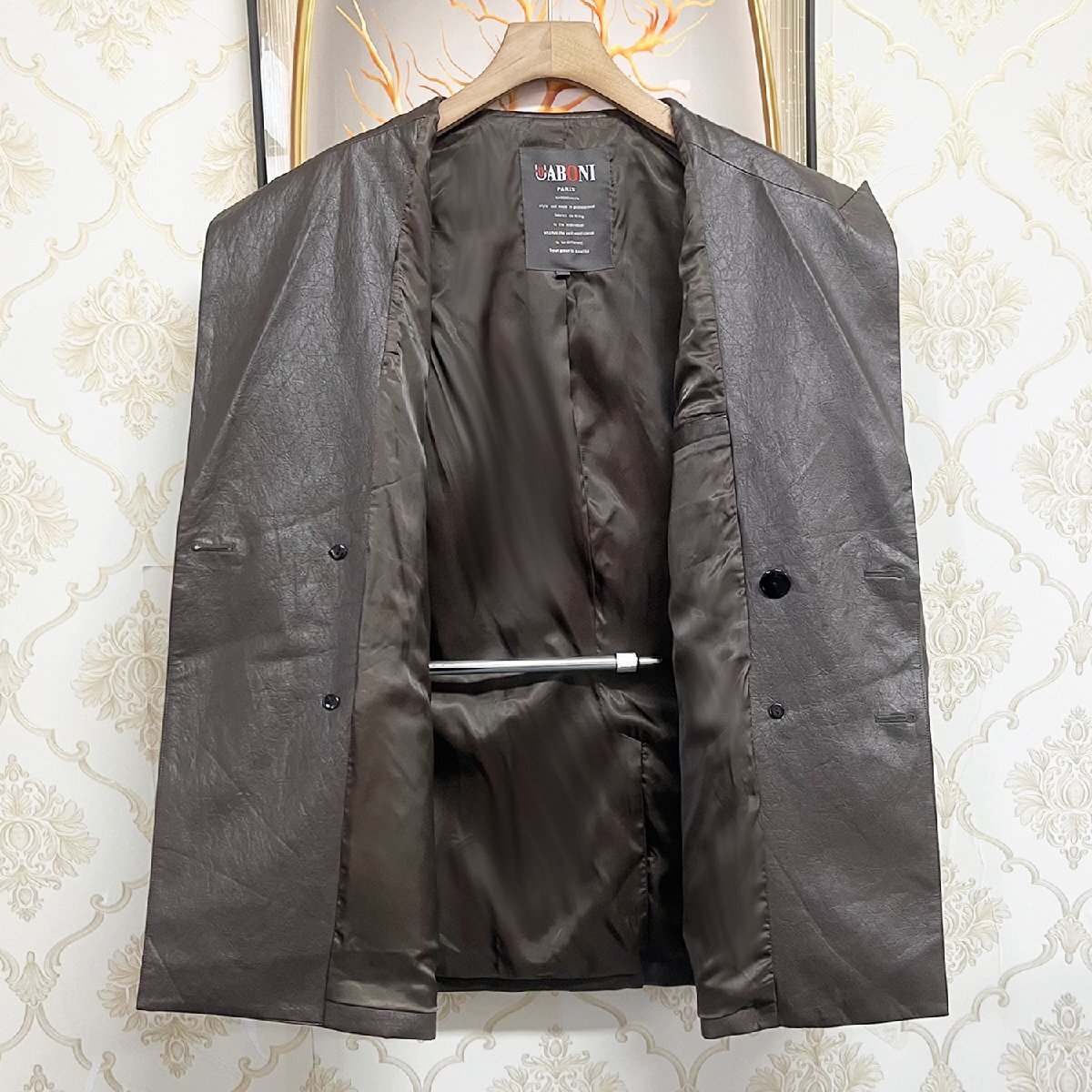 最高峰EU製&定価13万◆UABONI*ユアボニ*ジャケット*フランス*パリ発◆ソフト 撥水 無地 PUレザー チェストコート ブレザー 春秋 L/48サイズ