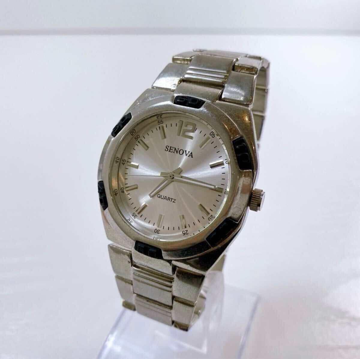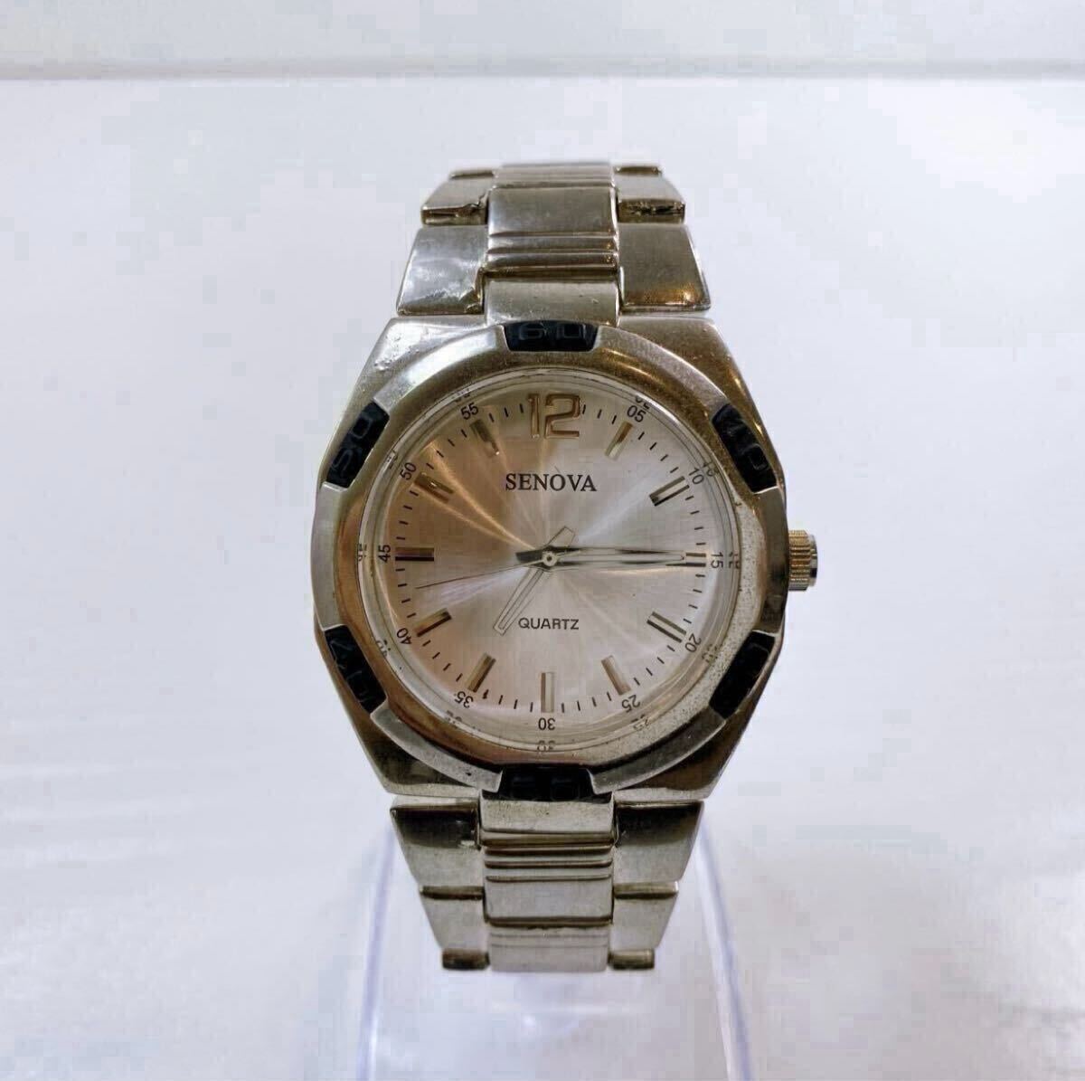 303【中古】SENOVA セノバ メンズ腕時計 WIN-1002 QUARTZ クォーツ シルバー ラウンドフェイス 文字盤シルバー 動作未確認 現状品