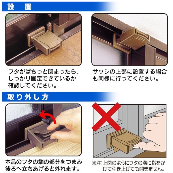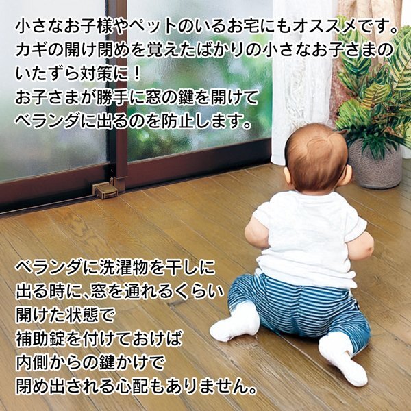 窓の戸締り、付属のカギだけでは不安な方に! 窓やサッシに付けるだけの手軽な補助錠。 |