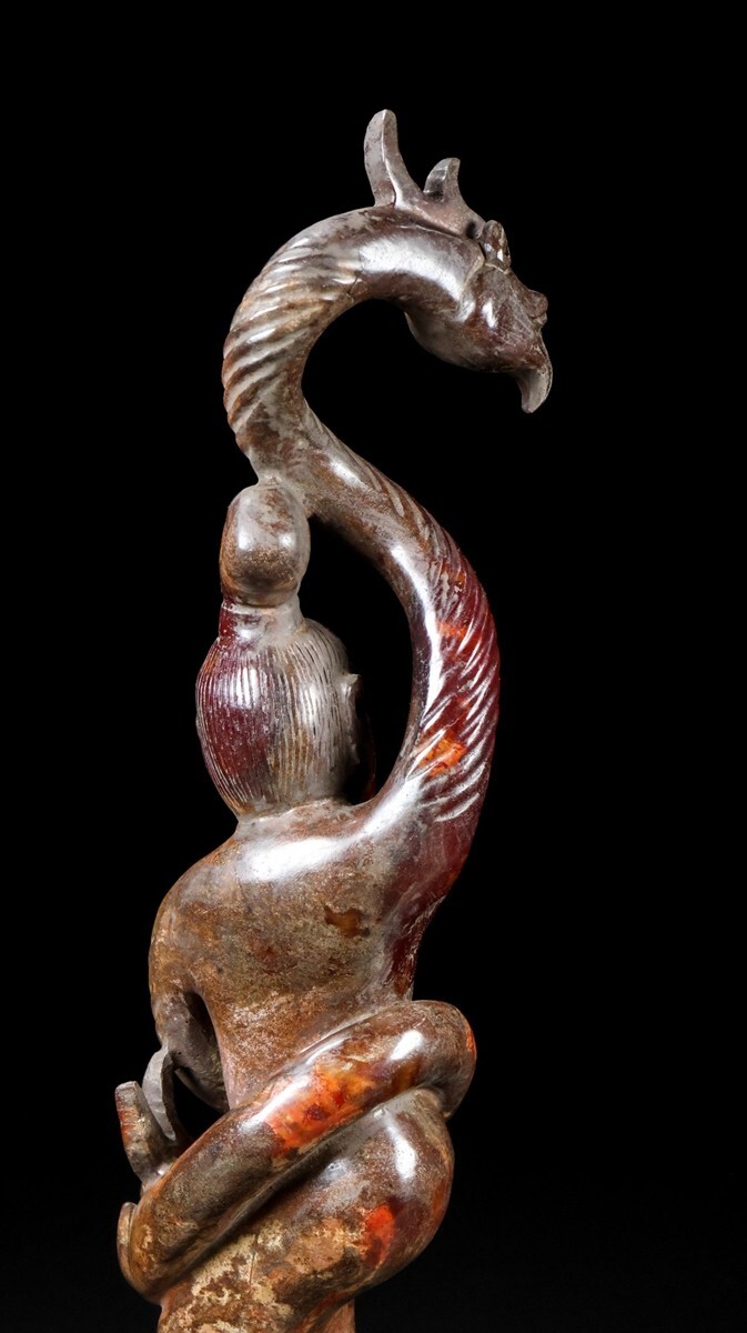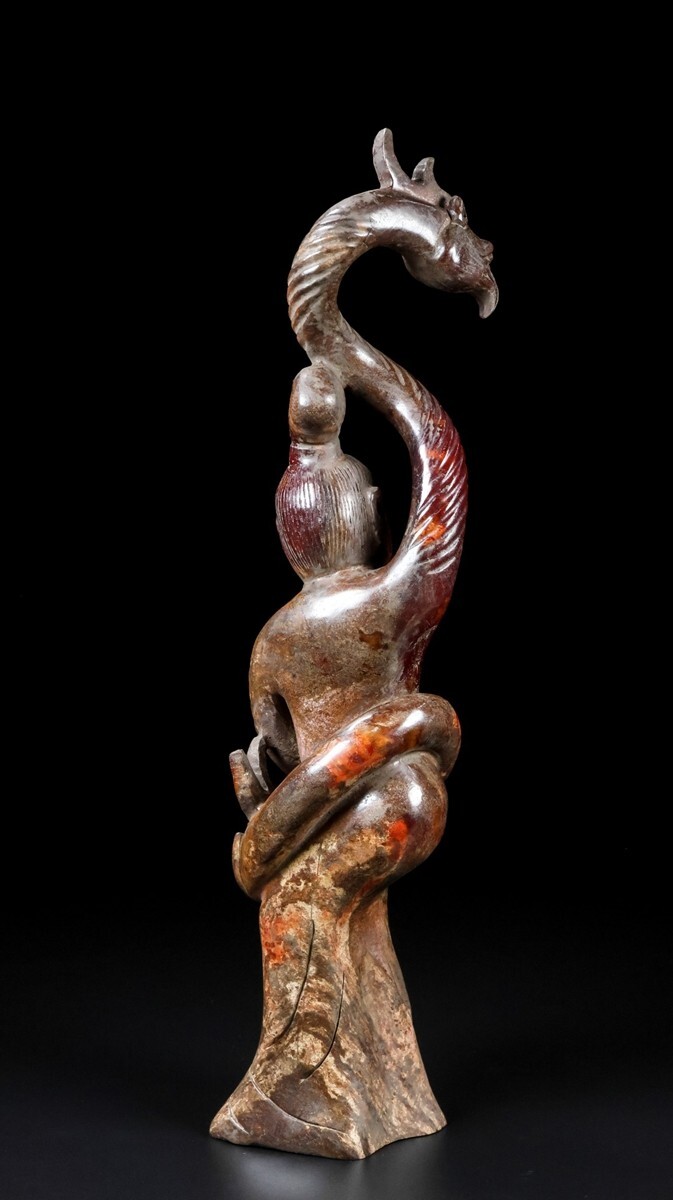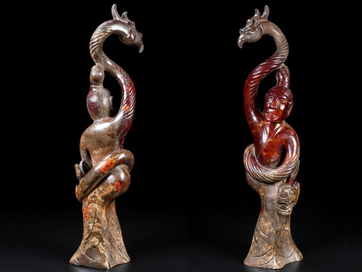 「戦漢時期 和田玉 高古玉彫り 龍鳳 玉人」極細工 擺件 中国古賞物 古美術 旧蔵出
