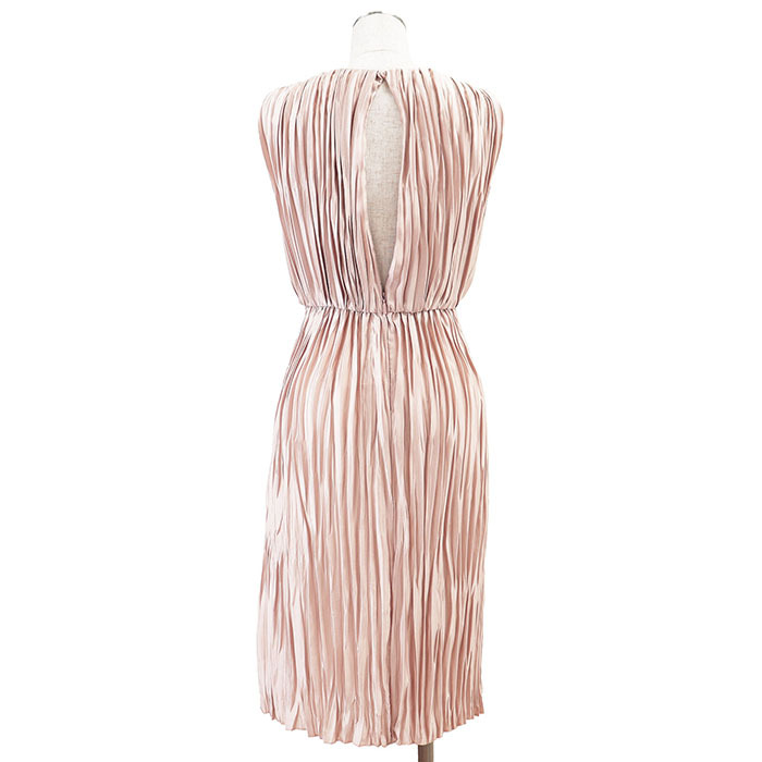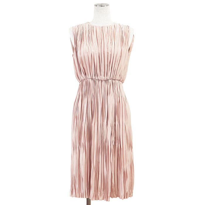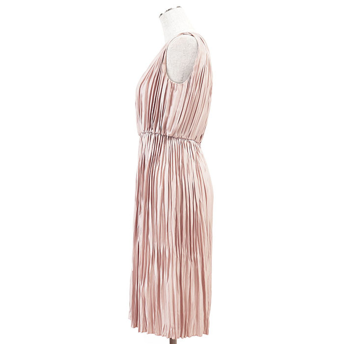 シリーズワンピース プリーツ & ギャザー ロゴ ボタン ノースリーブ トリアセテート ドレス レディース 36 桃色 伊製
