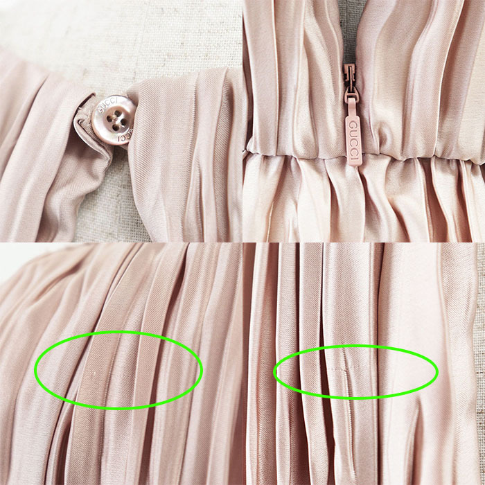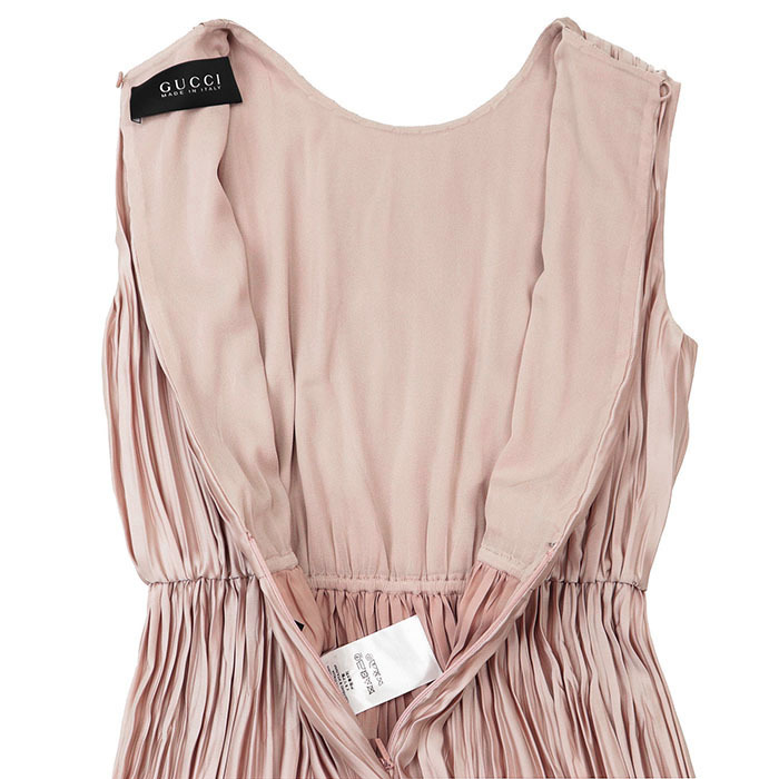 SALE【美品】GUCCI グッチ ワンピース プリーツ & ギャザー ロゴ ボタン ノースリーブ トリアセテート ドレス レディース 36 桃色 伊製