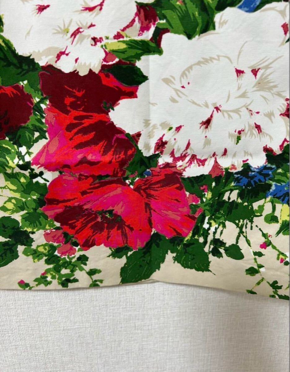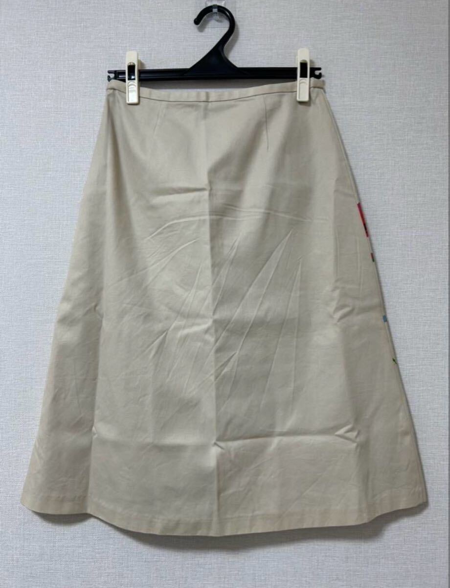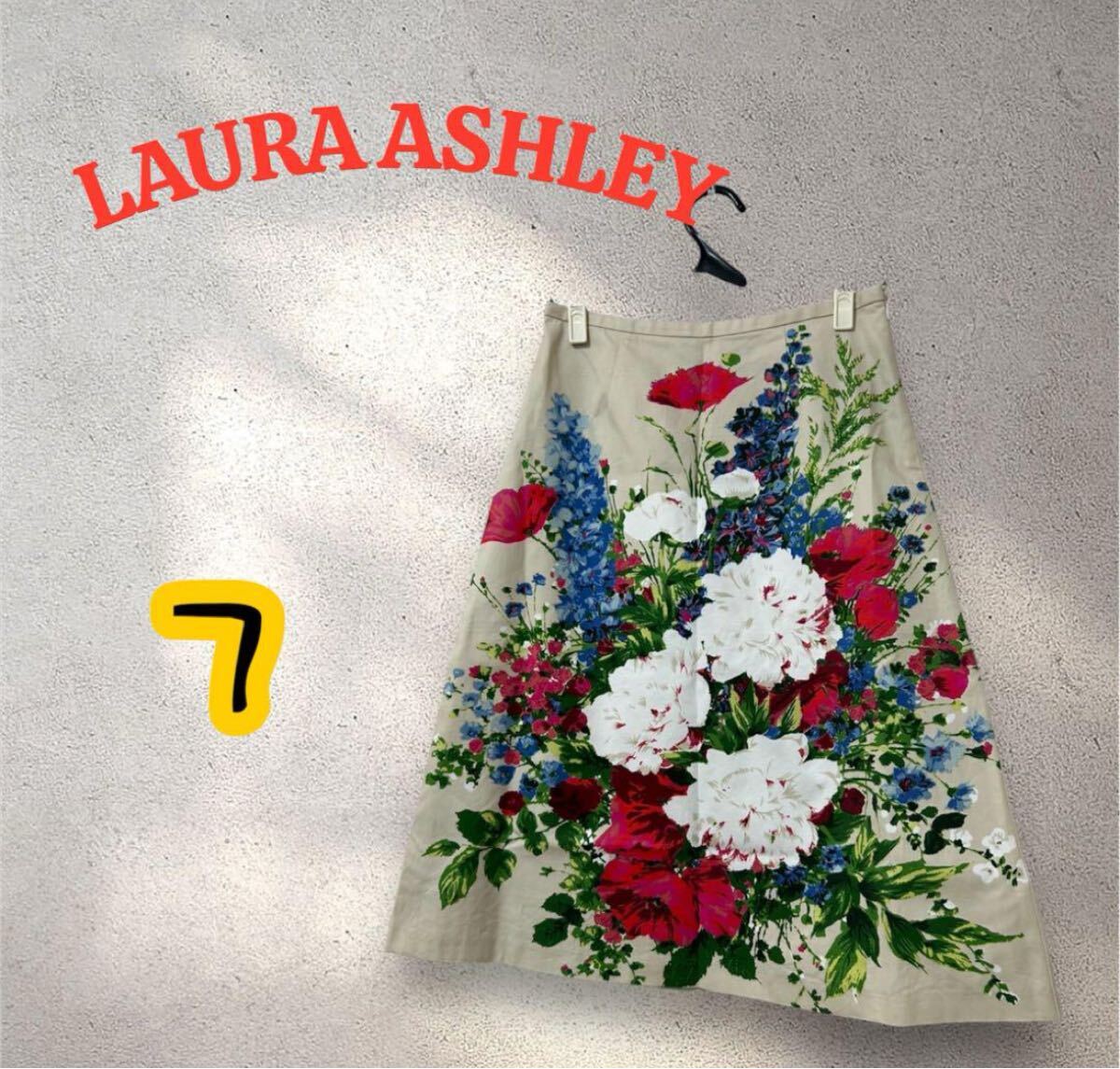 鮮やかなフラワープリントのひざ丈スカート、コットン混合素材で快適な着心地。