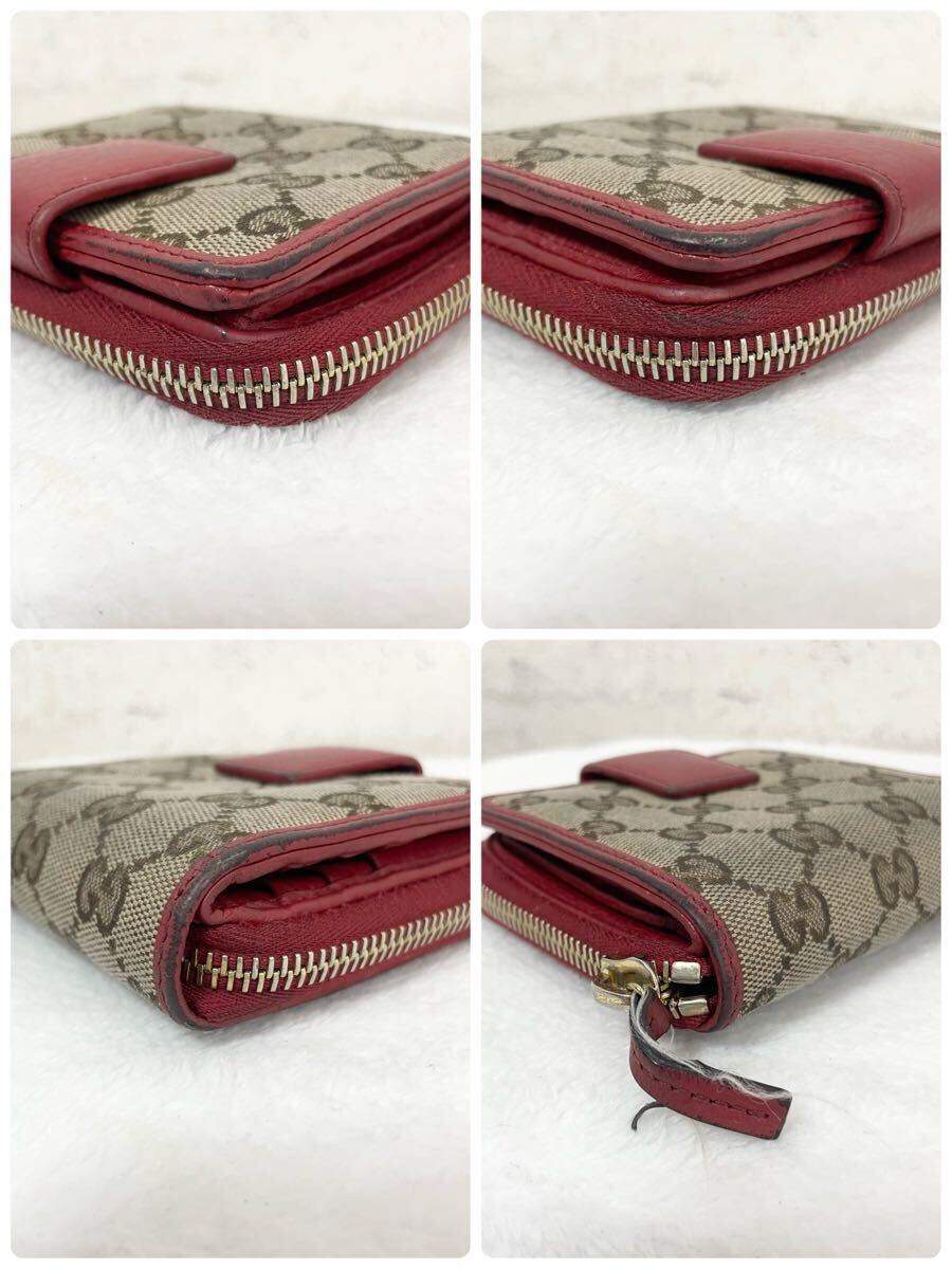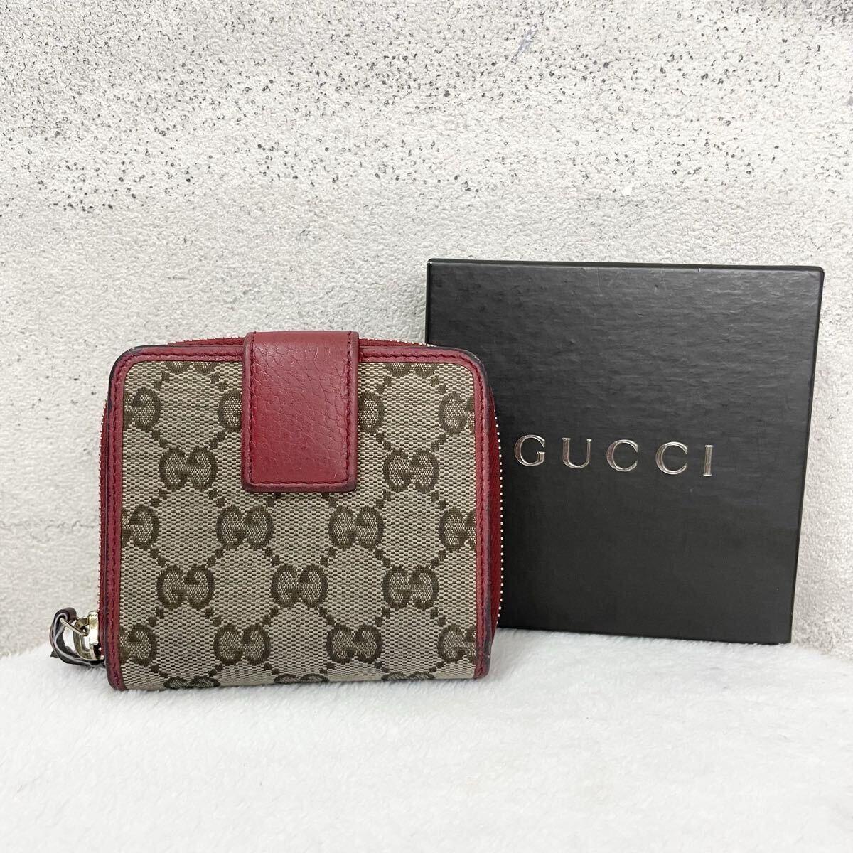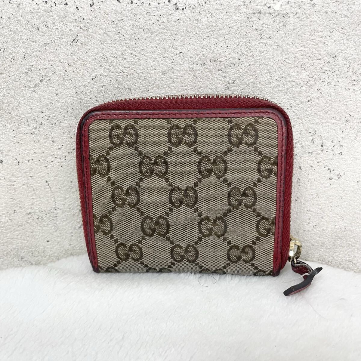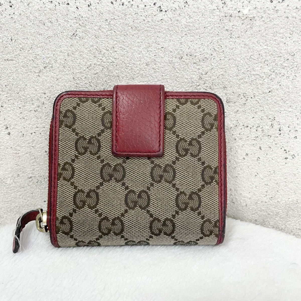 【贅沢品の極み】GUCCI グッチ 折財布 カードケース コインケース お札ケース GG キャンバス レザー ロゴ ブラウン レッド