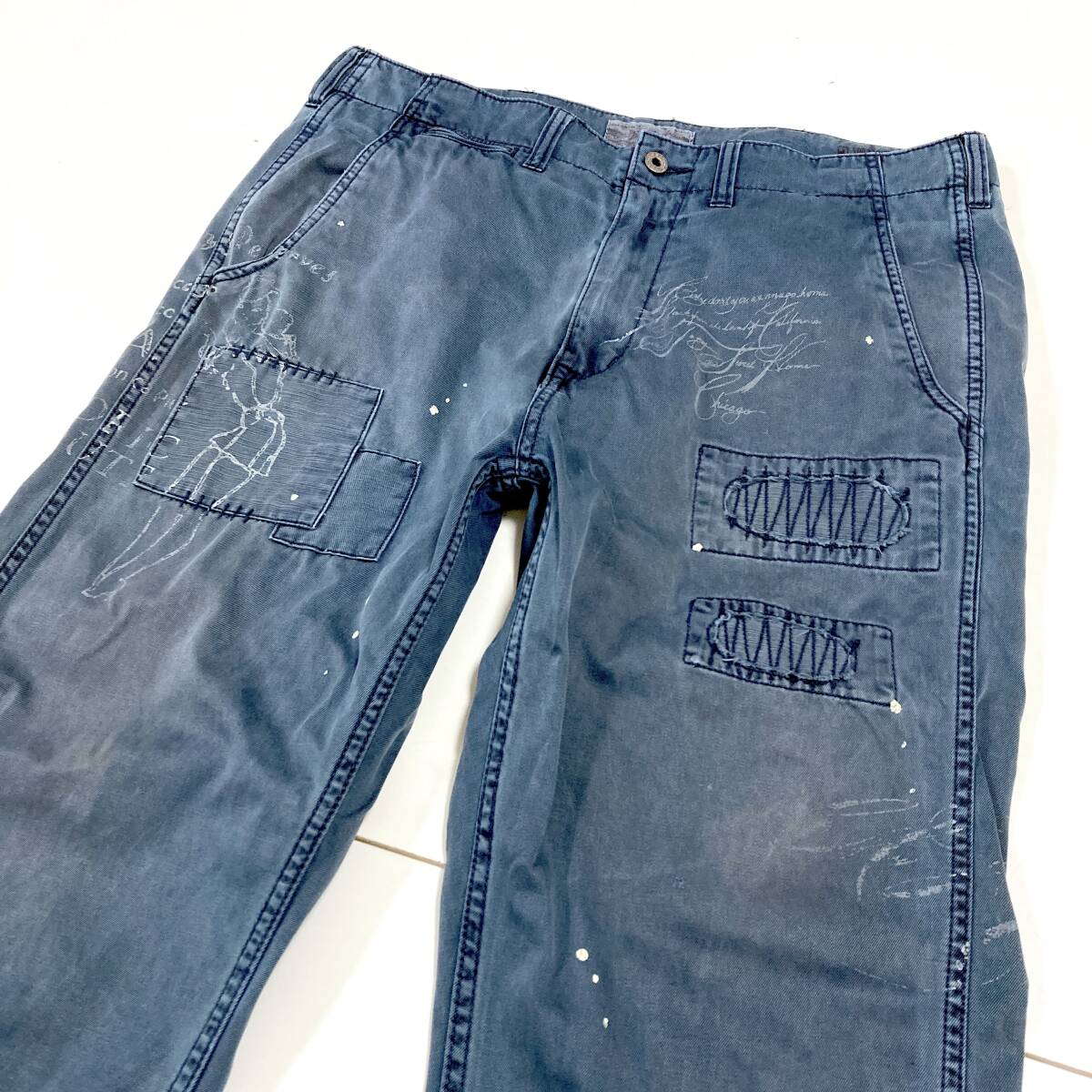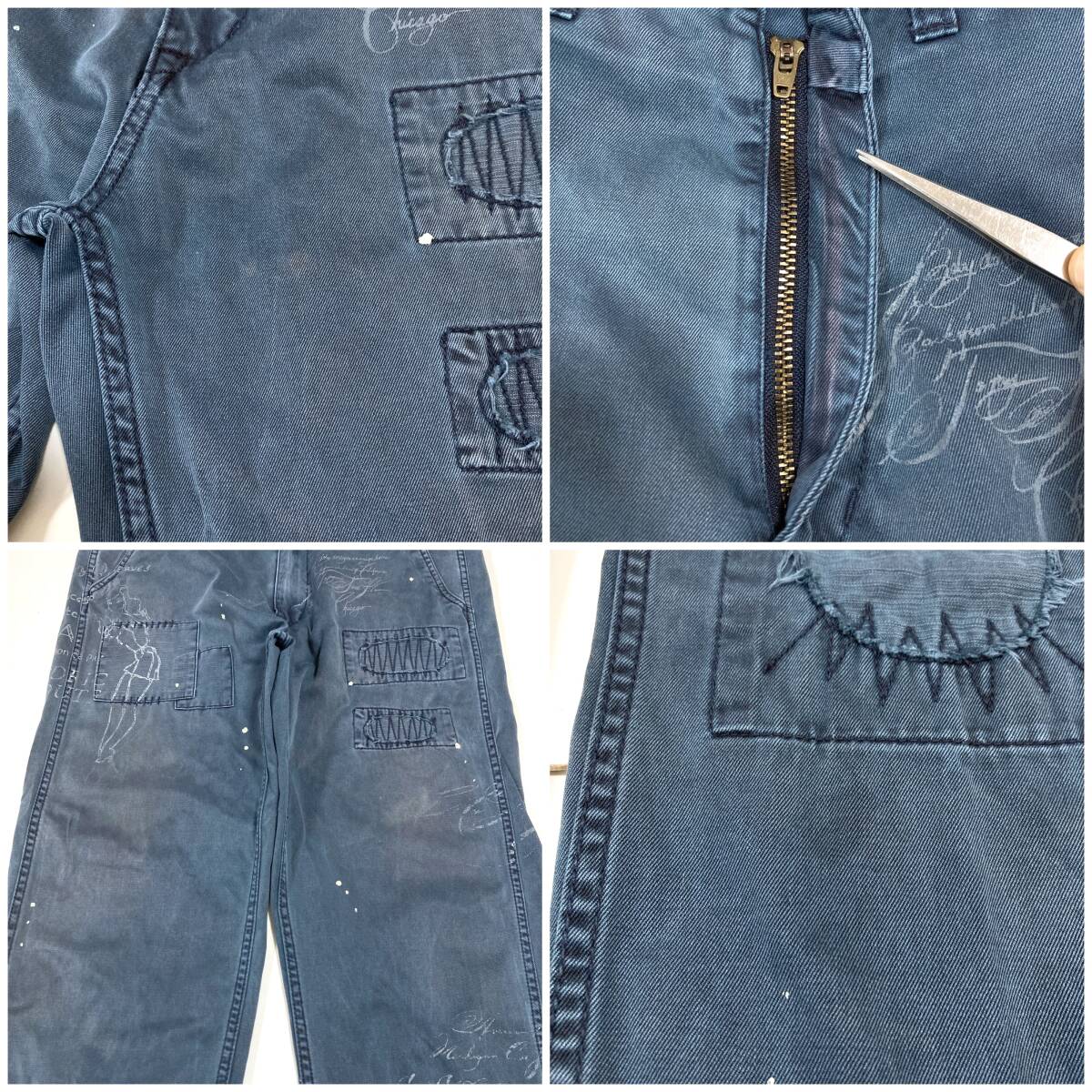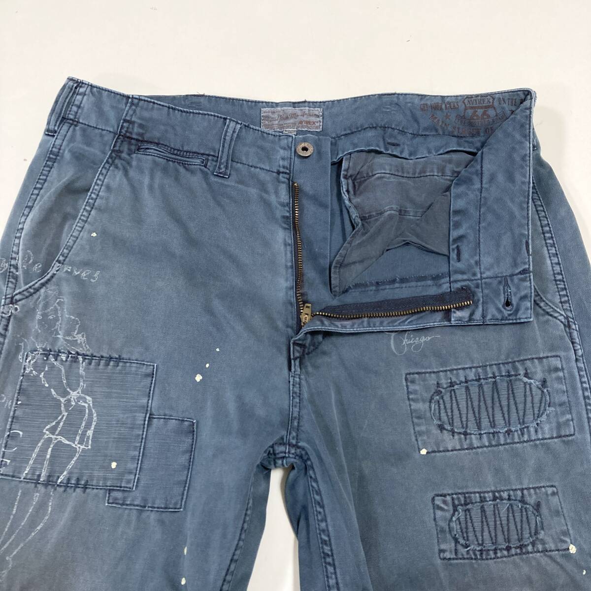 AVIREX 硫化染め ダメージ加工 ピンナップガール ミリタリー パンツ 紺 メンズ XLサイズ 大きいサイズ アビレックス 5080106
